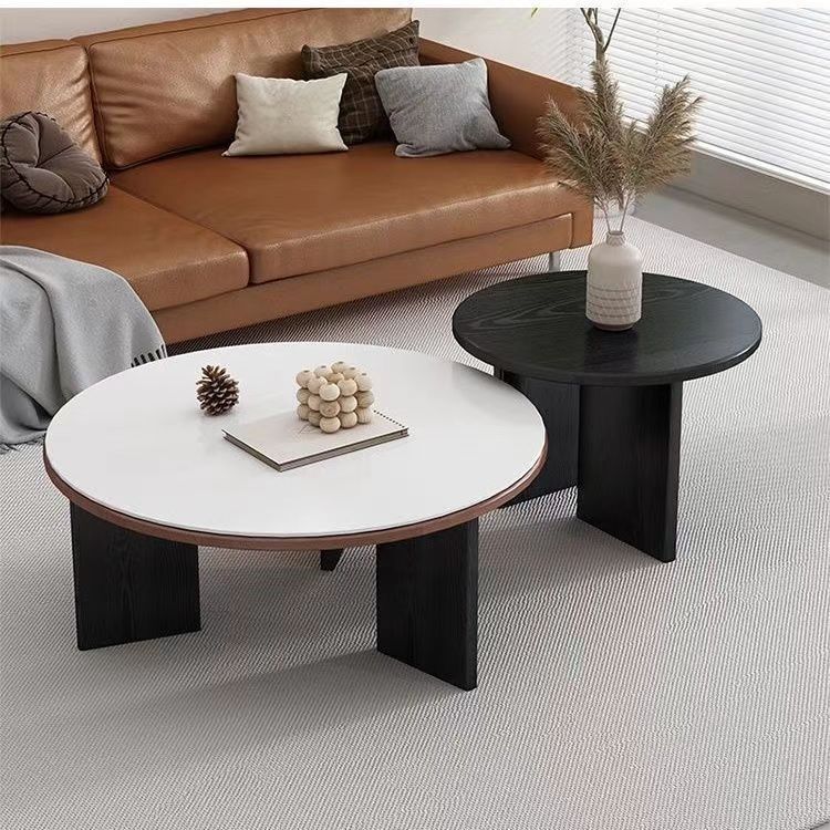 간단한 현대 커피 테이블 블랙 MDF 라운드 작은 아파트 거실 홈 라이트 럭셔리 호두 컬러 디자이너 조합스토어 가기