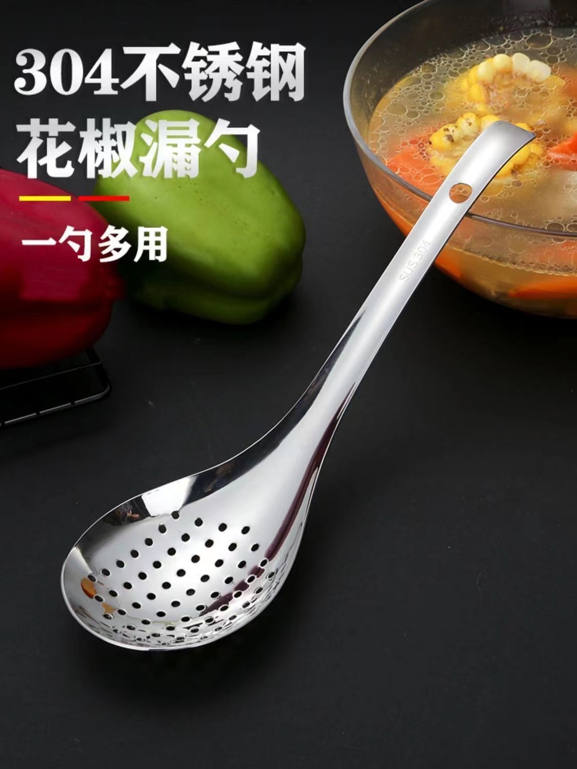 고추 낚시 짧은 손잡이 스테인레스 스틸 304 스몰 사이즈 캐비아 누설 숟가락 가정용 주방 스트레이너