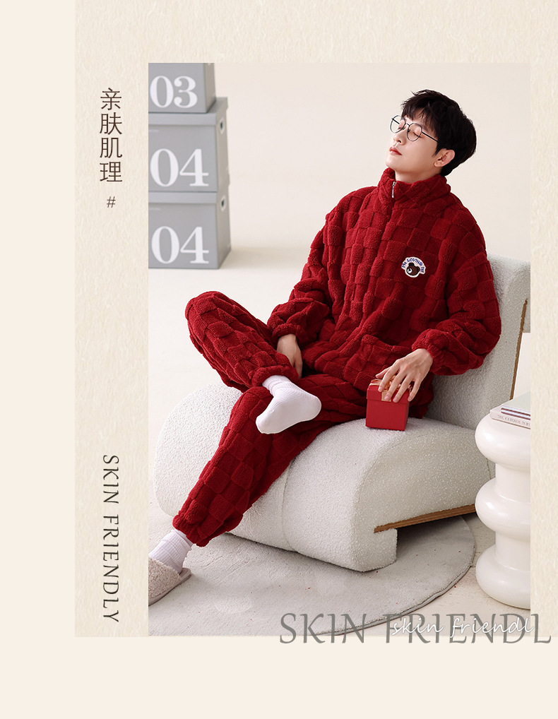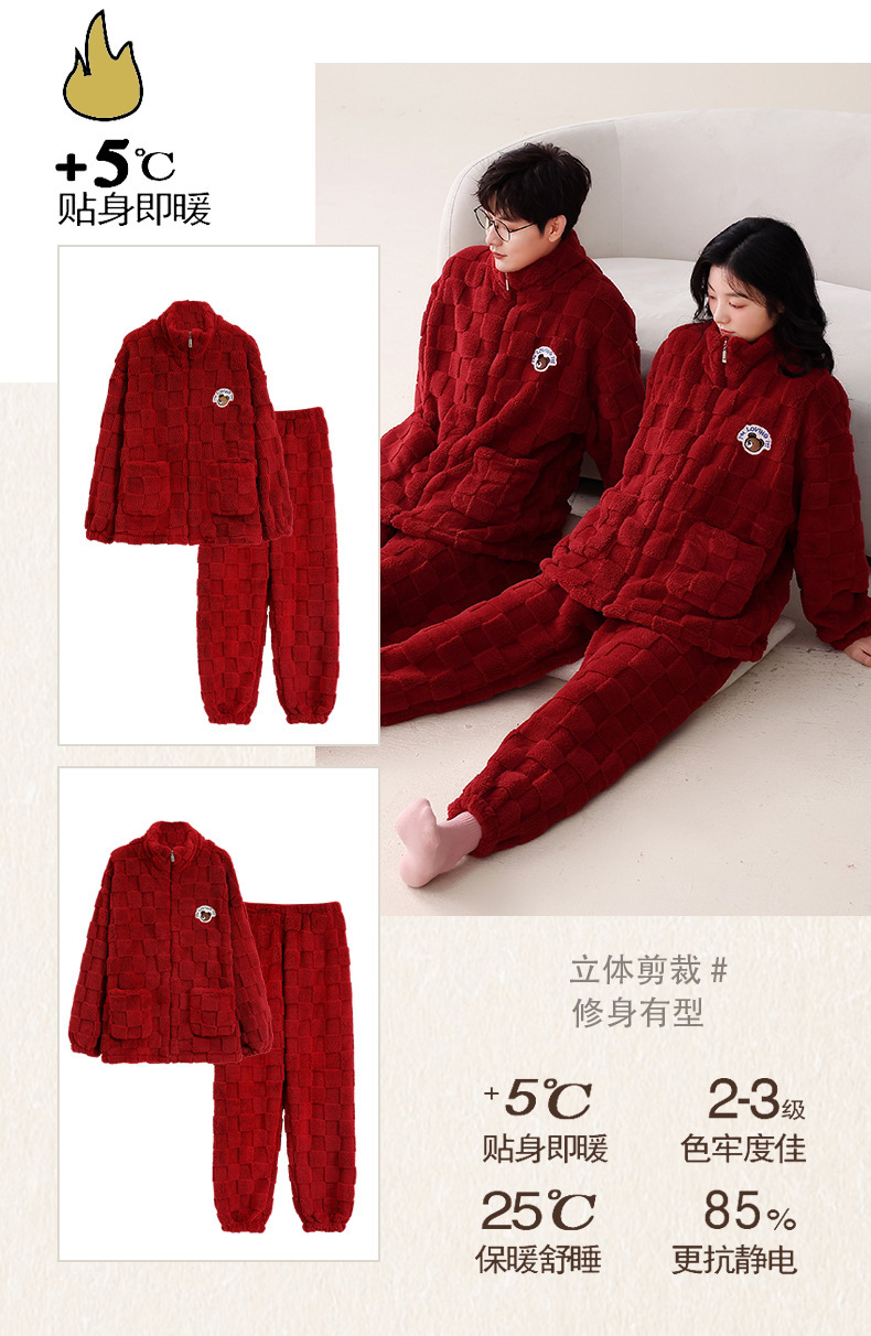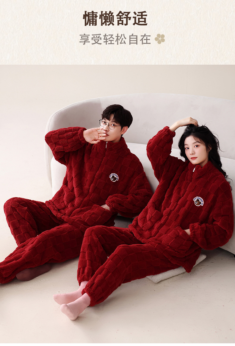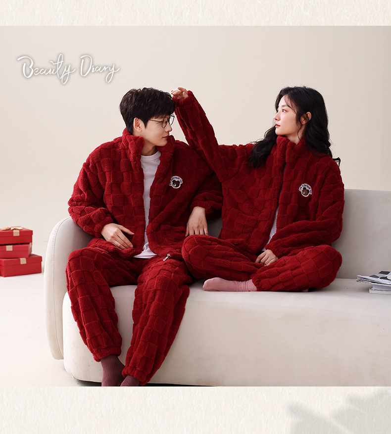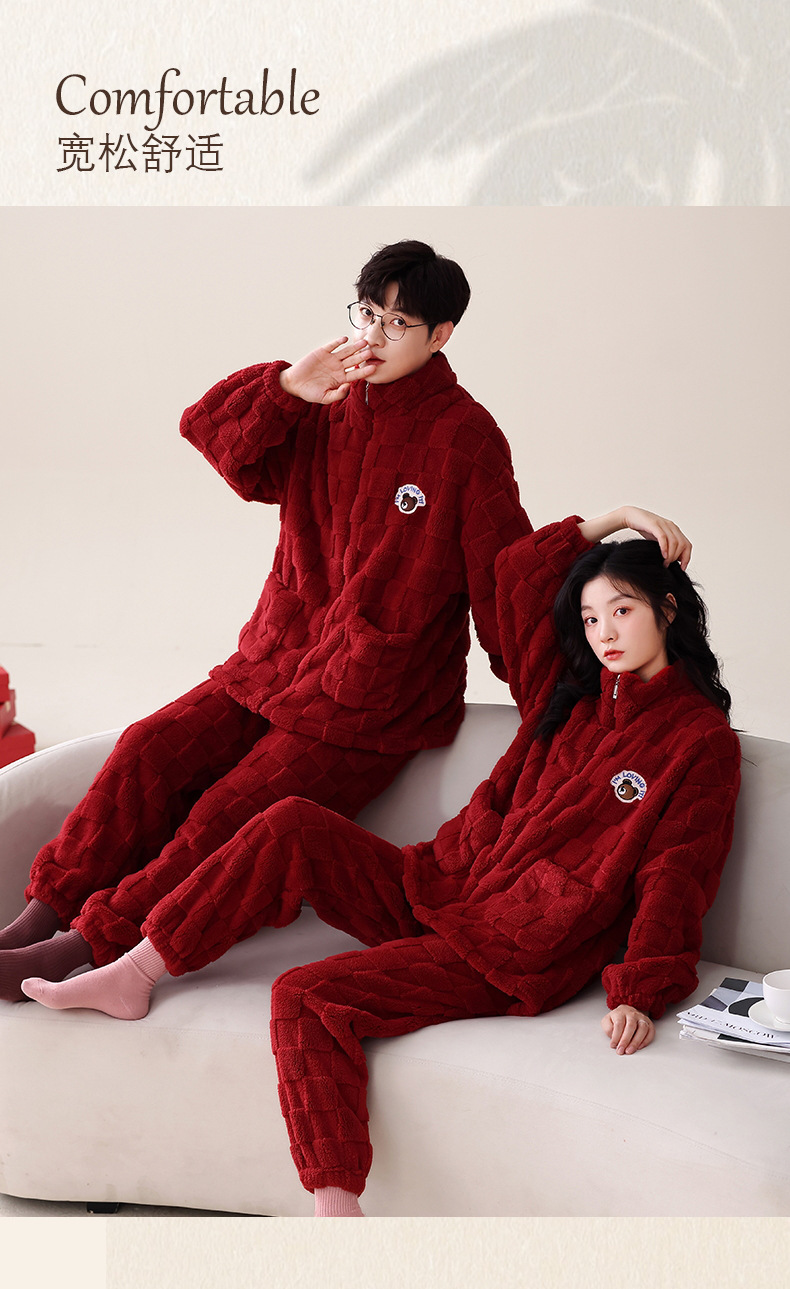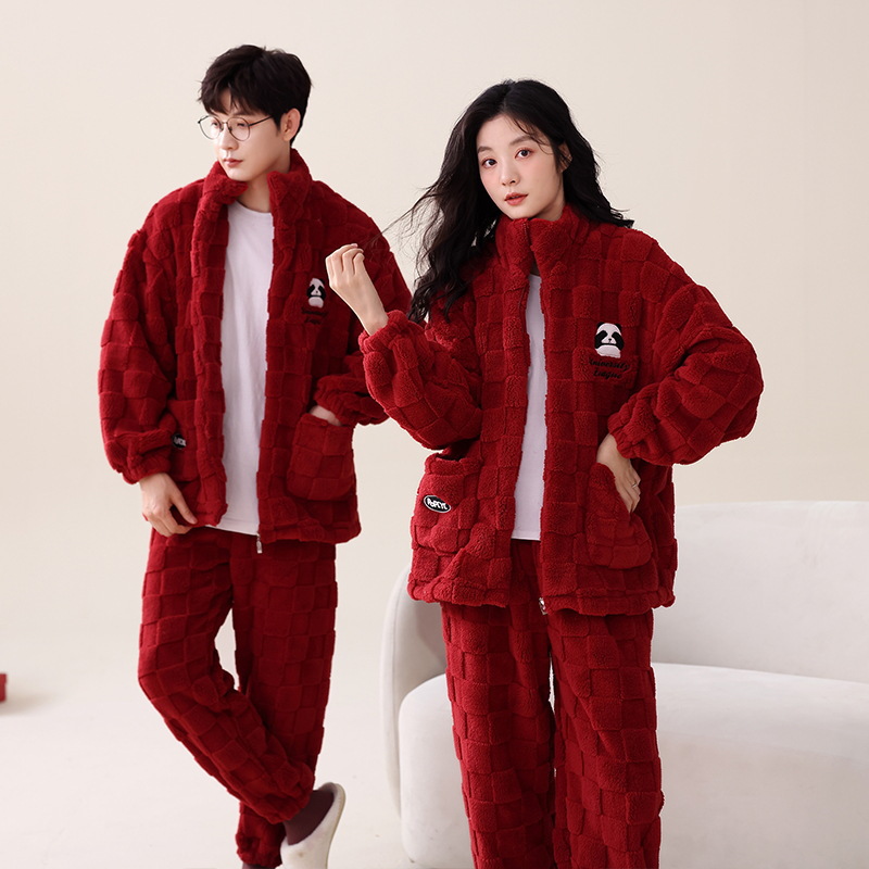 산호 벨벳 웨딩 웨딩 빅 레드 두꺼운 기모 겨울 잠옷 여성 복장 느슨한 커플 잠옷