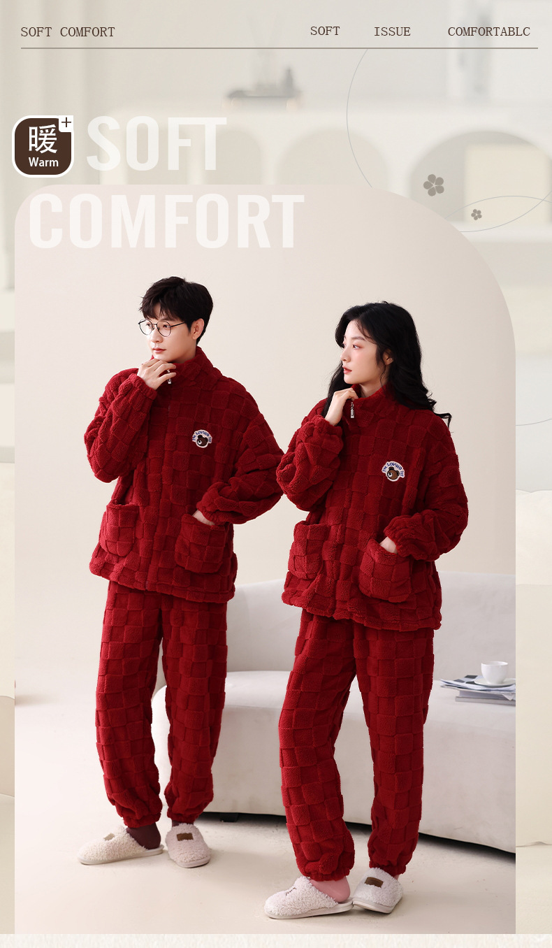 산호 벨벳 웨딩 웨딩 빅 레드 두꺼운 기모 겨울 잠옷 여성 복장 느슨한 커플 잠옷스토어 가기