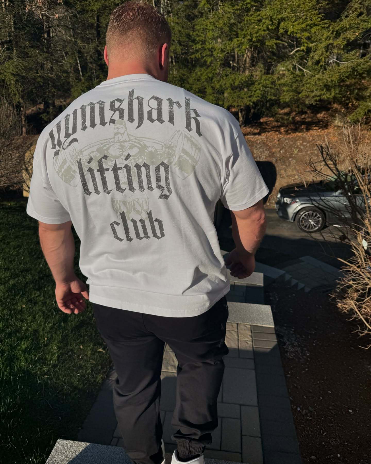 짐샤크 머슬 샤크 아메리칸 스타일 루즈핏 빅사이즈 프린트 스포츠 피트니스 순면 티셔츠 남성용 반팔스토어 가기