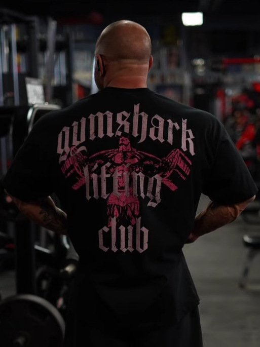짐샤크 머슬 샤크 아메리칸 스타일 루즈핏 빅사이즈 프린트 스포츠 피트니스 순면 티셔츠 남성용 반팔