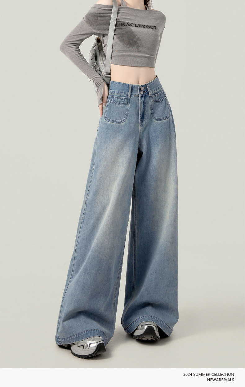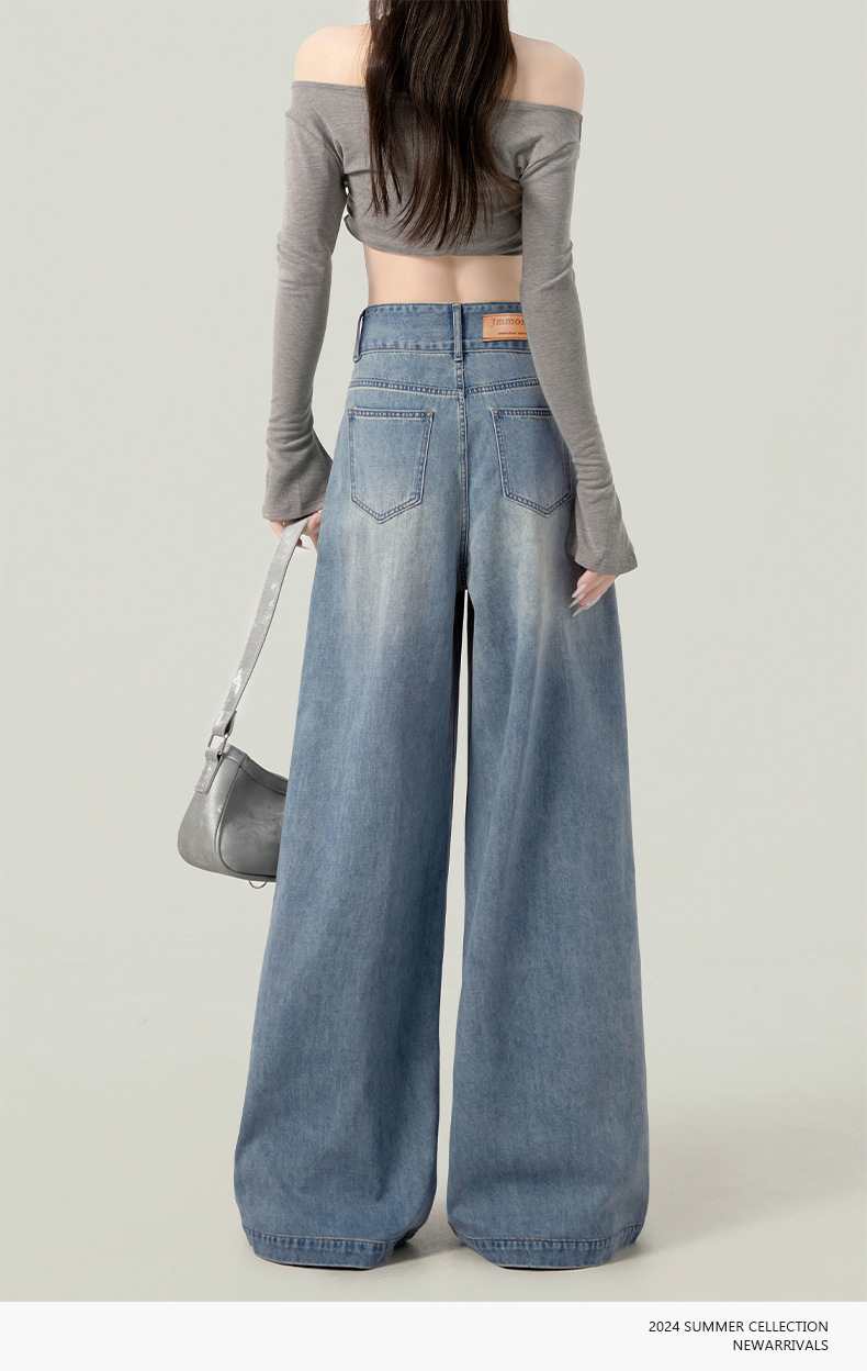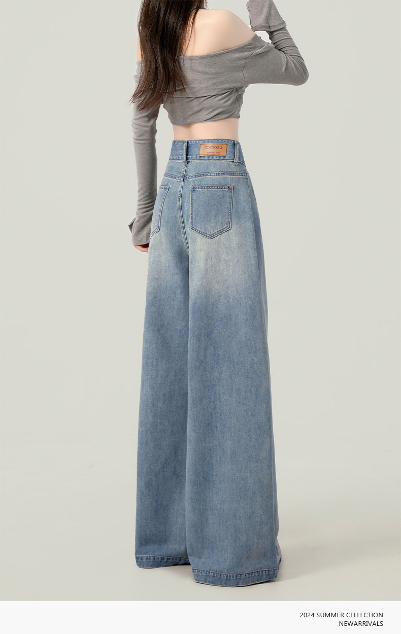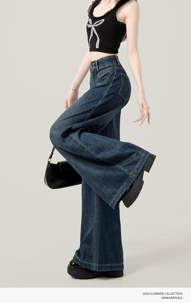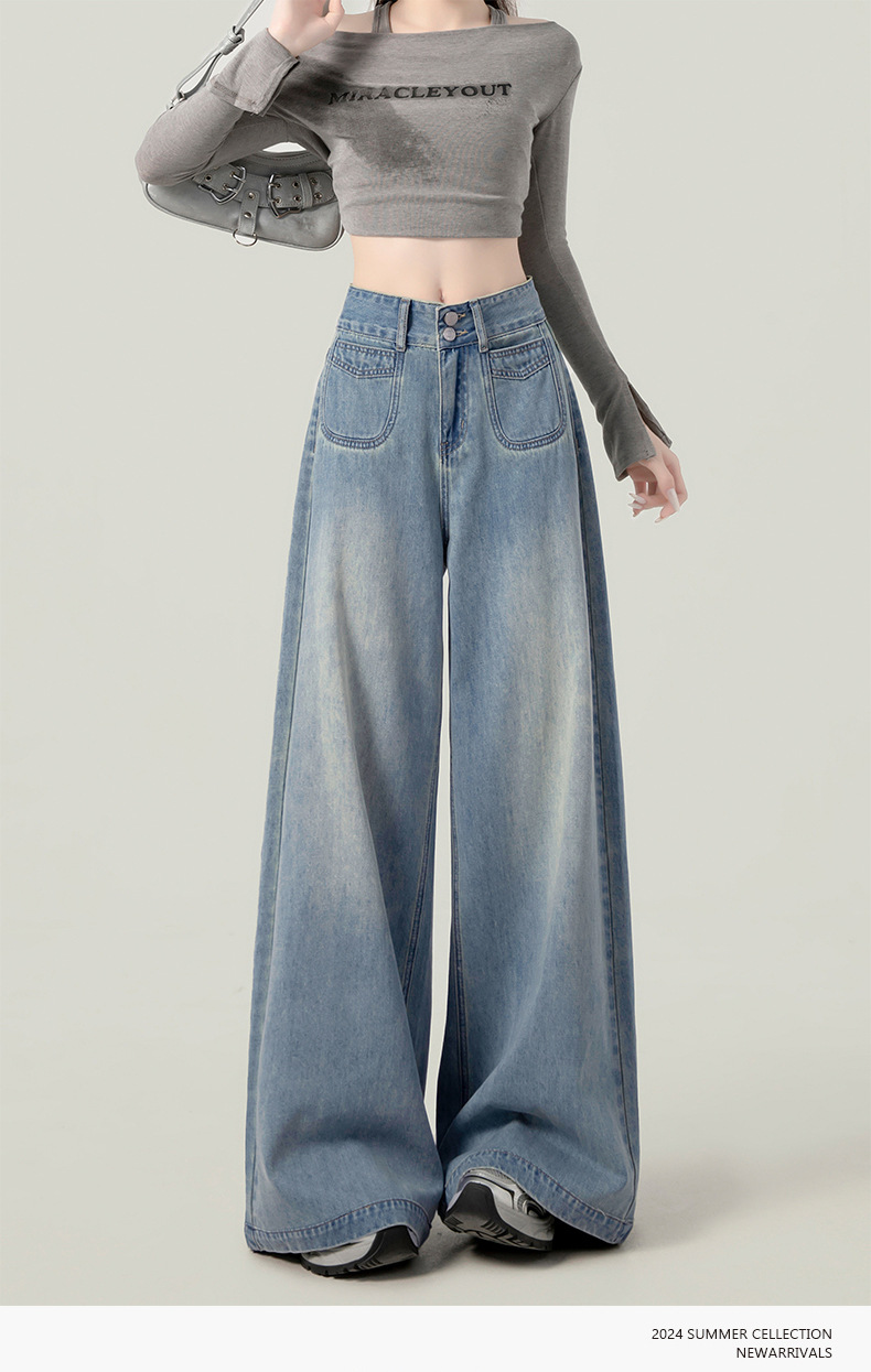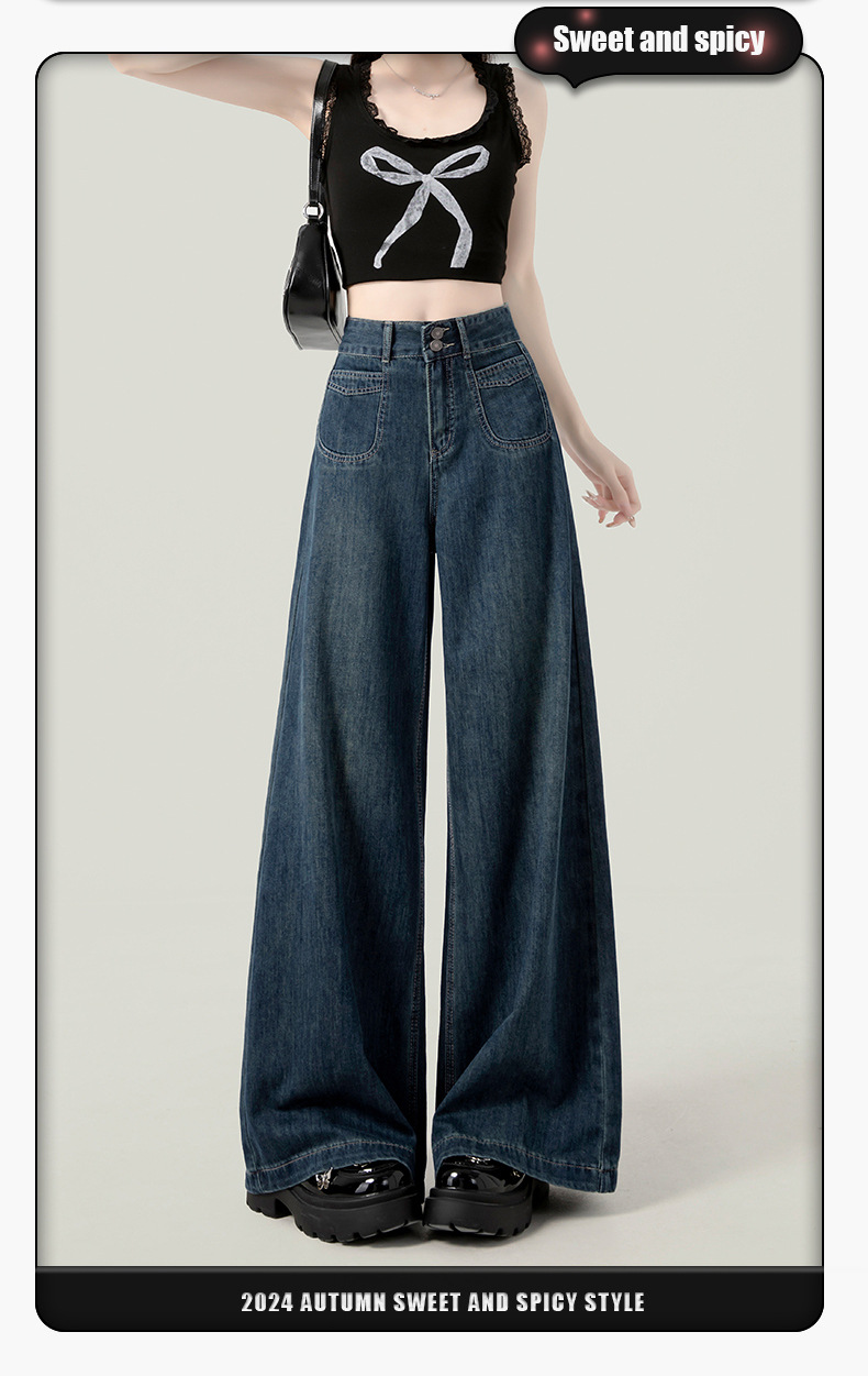 높은 허리 넓은 다리 청바지 여성의 가을과 겨울 유행 새로운 도착 캐주얼 느슨한 기모 스트레이트 바지 봄과 가을