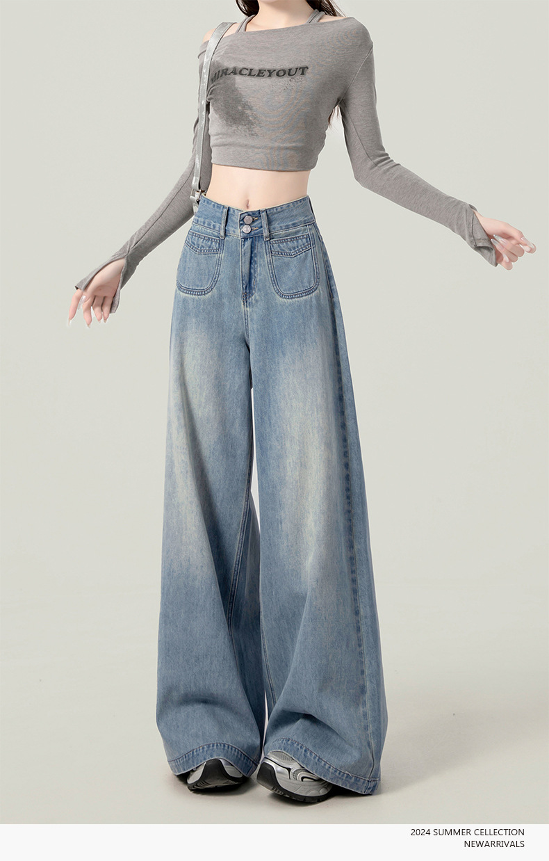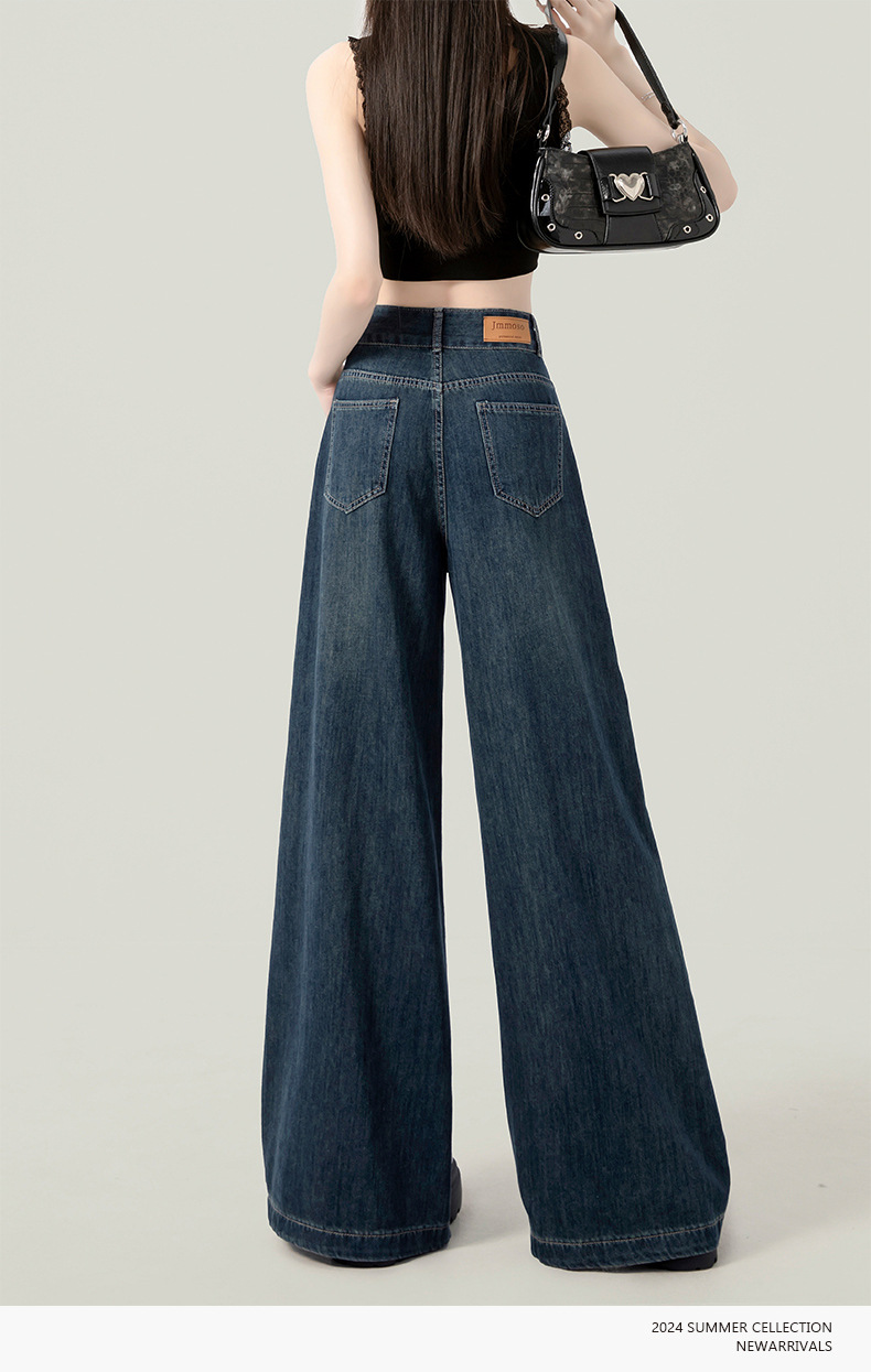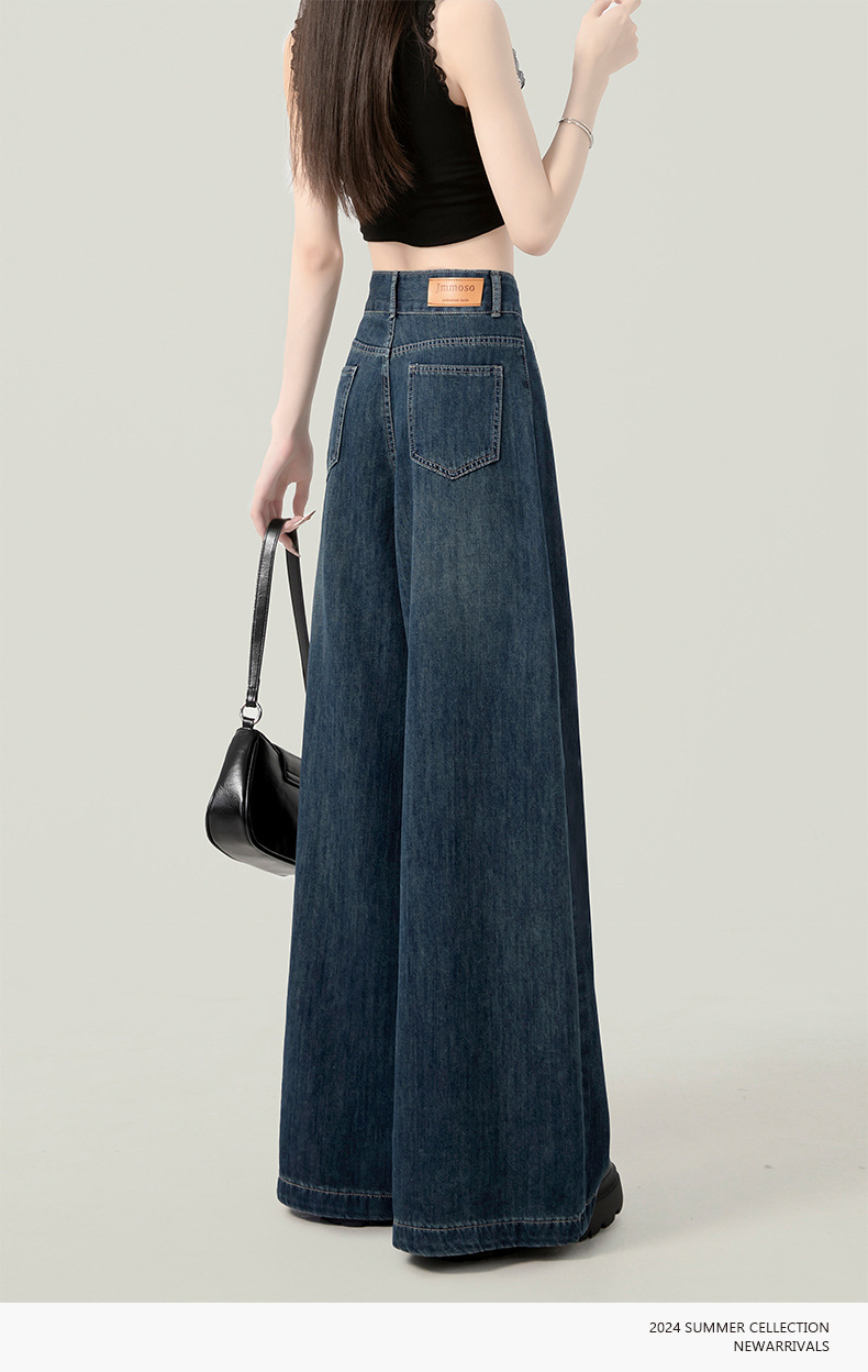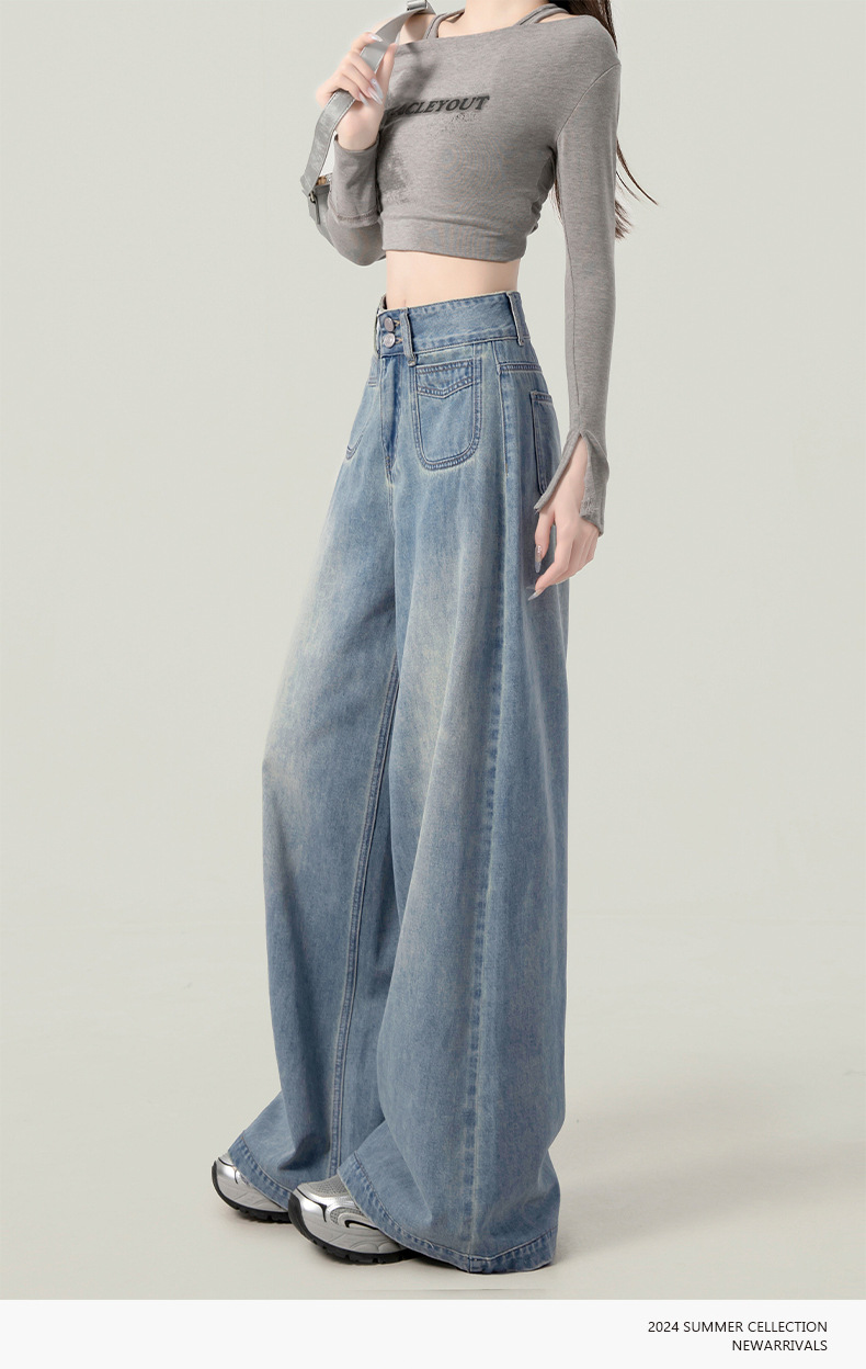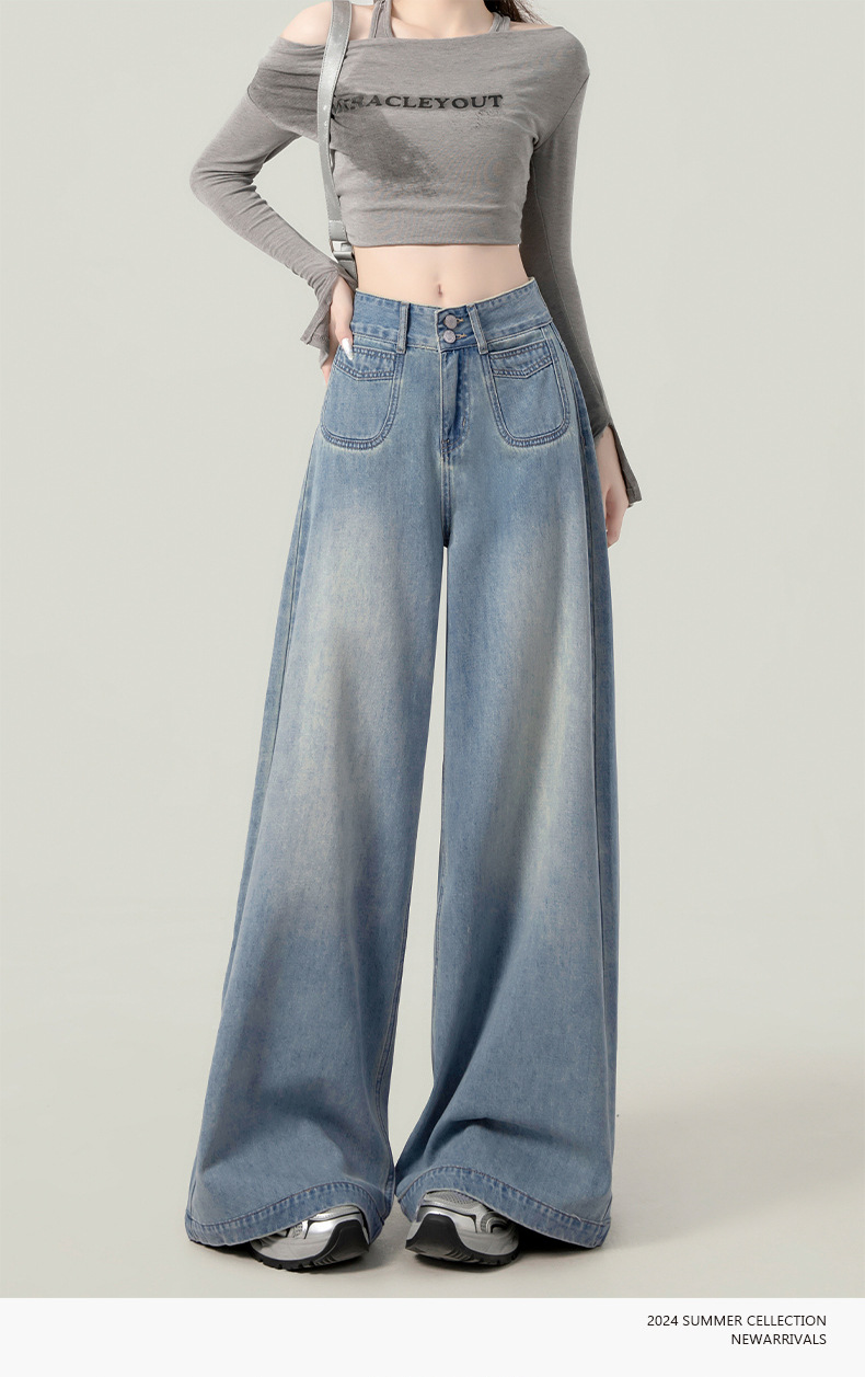 높은 허리 넓은 다리 청바지 여성의 가을과 겨울 유행 새로운 도착 캐주얼 느슨한 기모 스트레이트 바지 봄과 가을