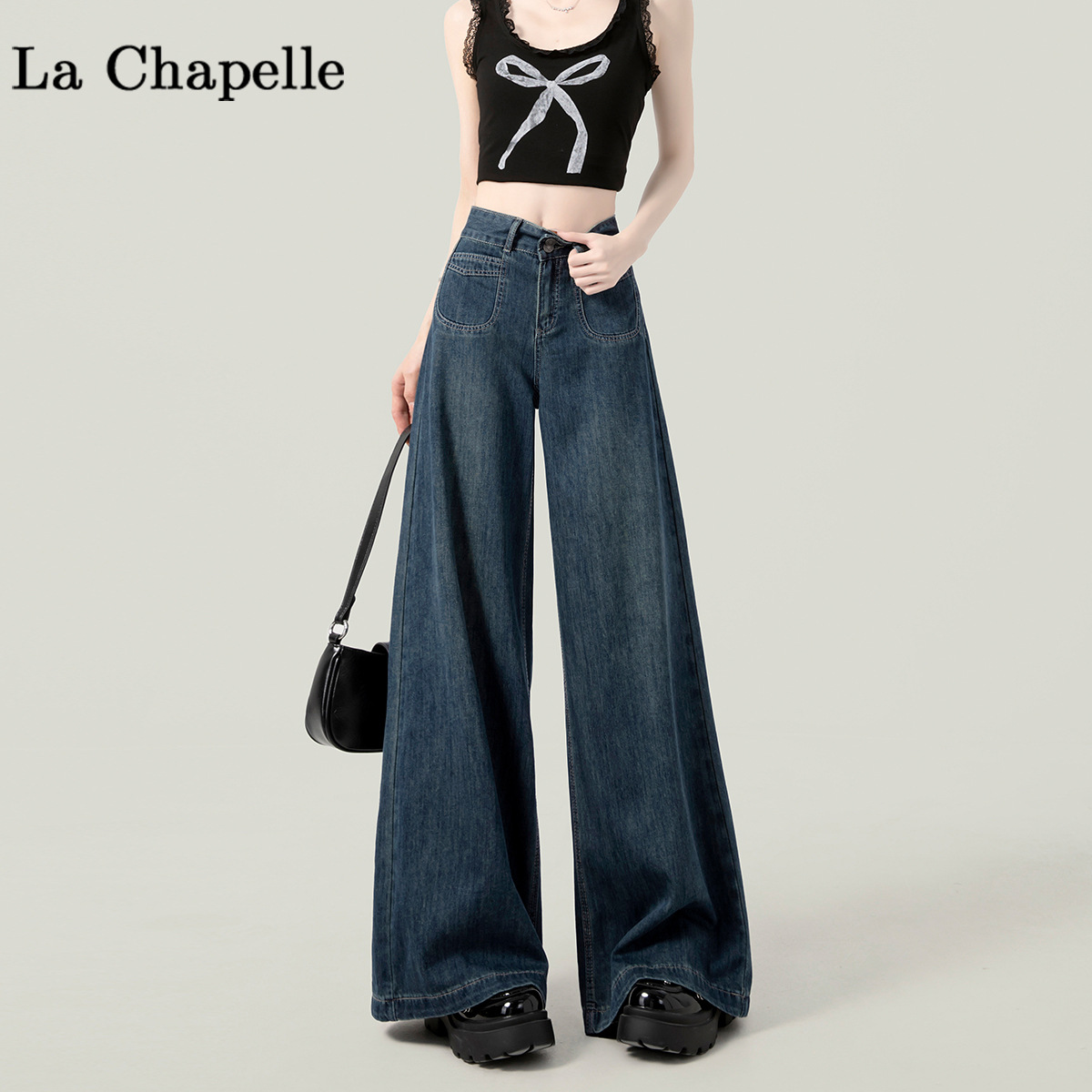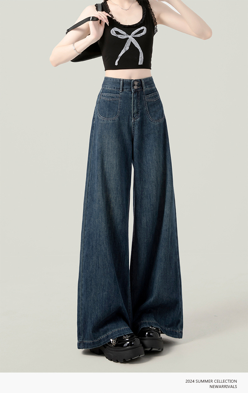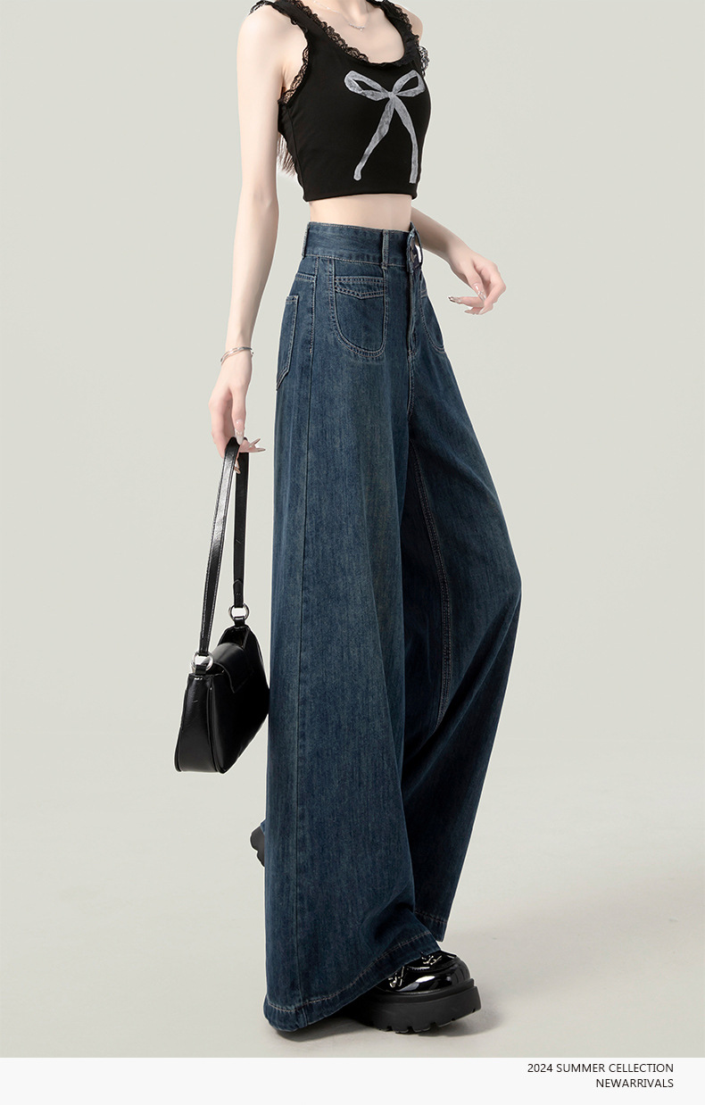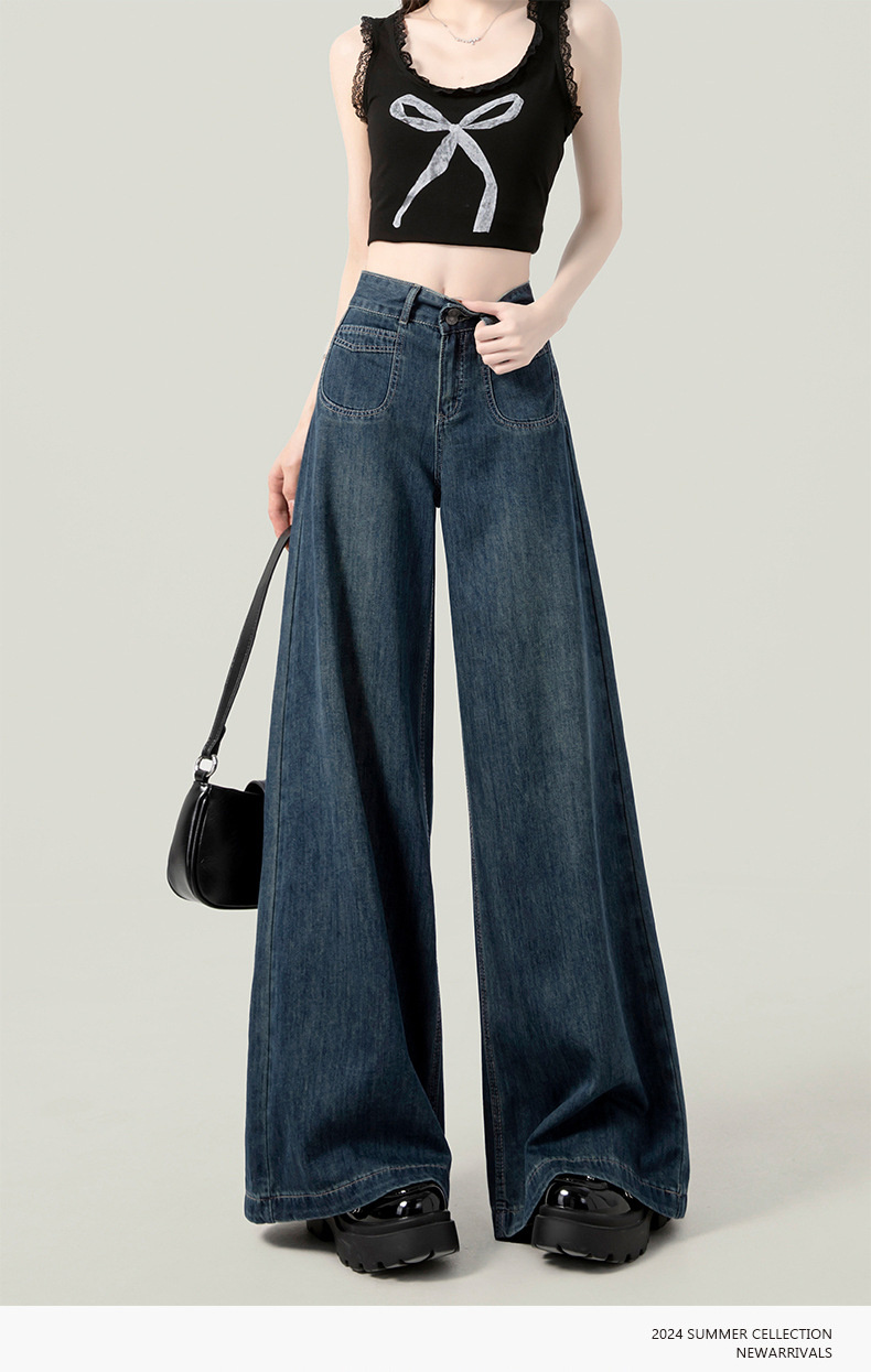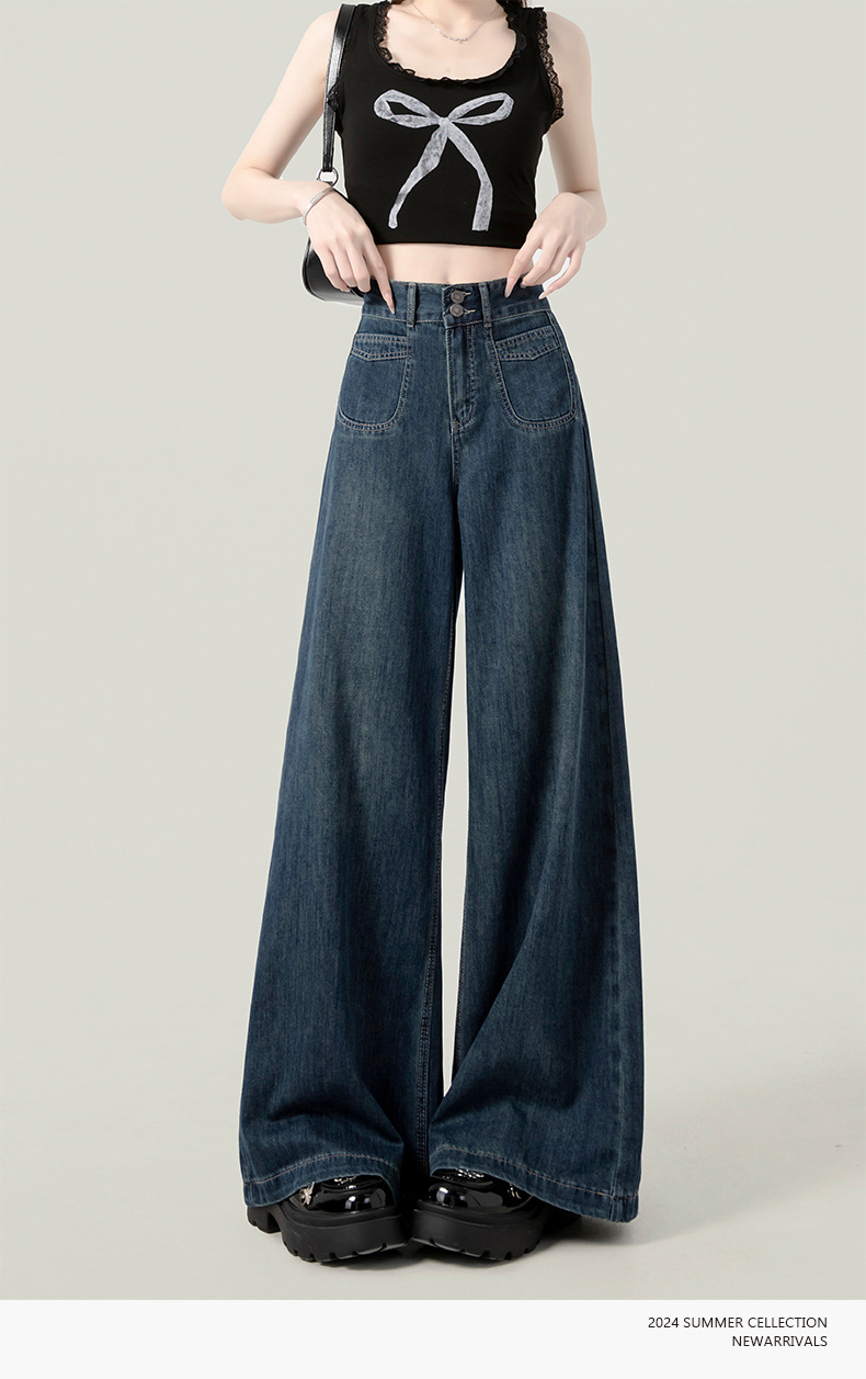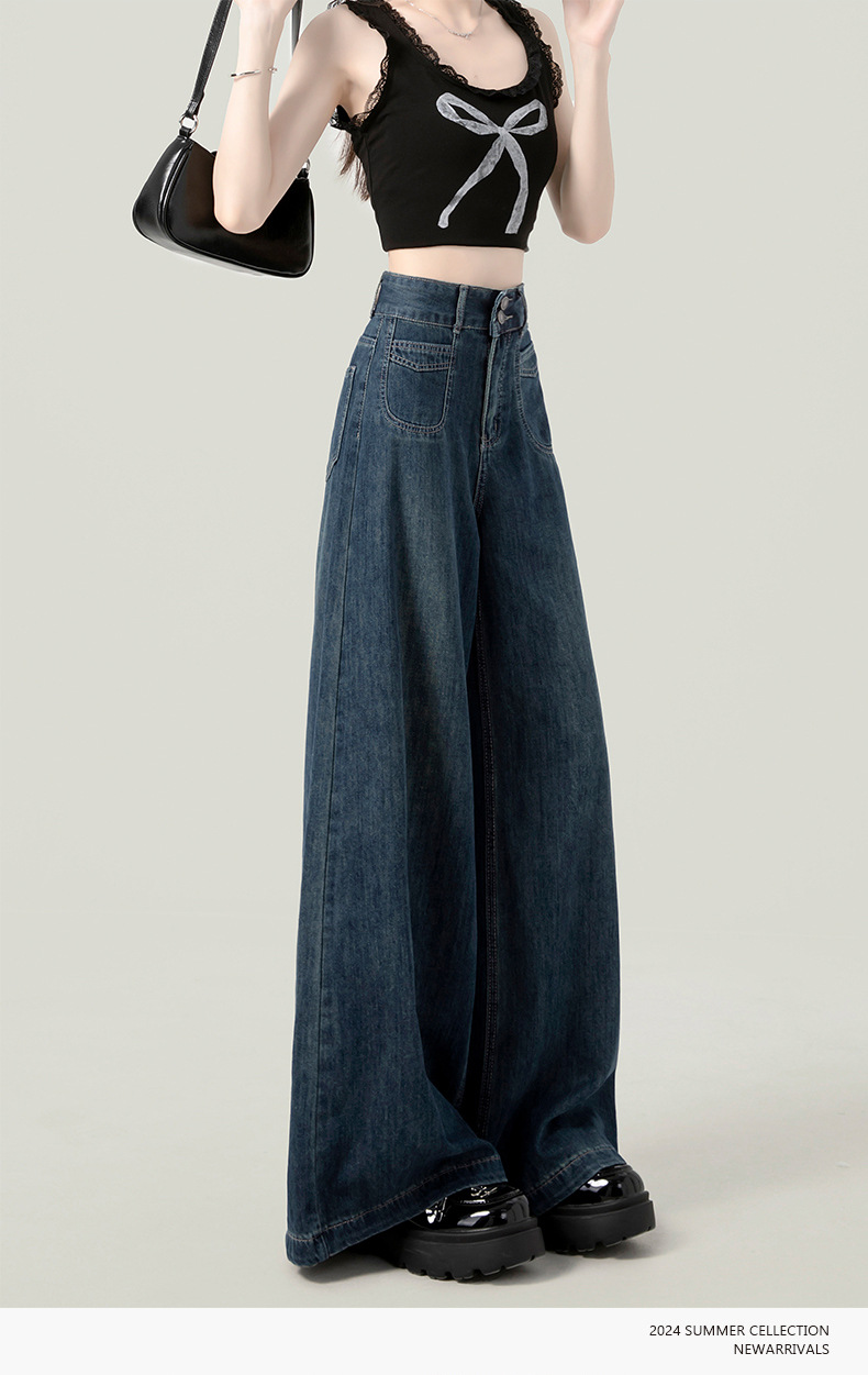 높은 허리 넓은 다리 청바지 여성의 가을과 겨울 유행 새로운 도착 캐주얼 느슨한 기모 스트레이트 바지 봄과 가을
