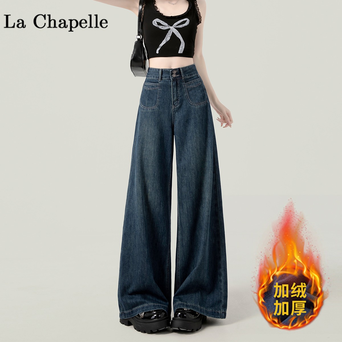 높은 허리 넓은 다리 청바지 여성의 가을과 겨울 유행 새로운 도착 캐주얼 느슨한 기모 스트레이트 바지 봄과 가을스토어 가기