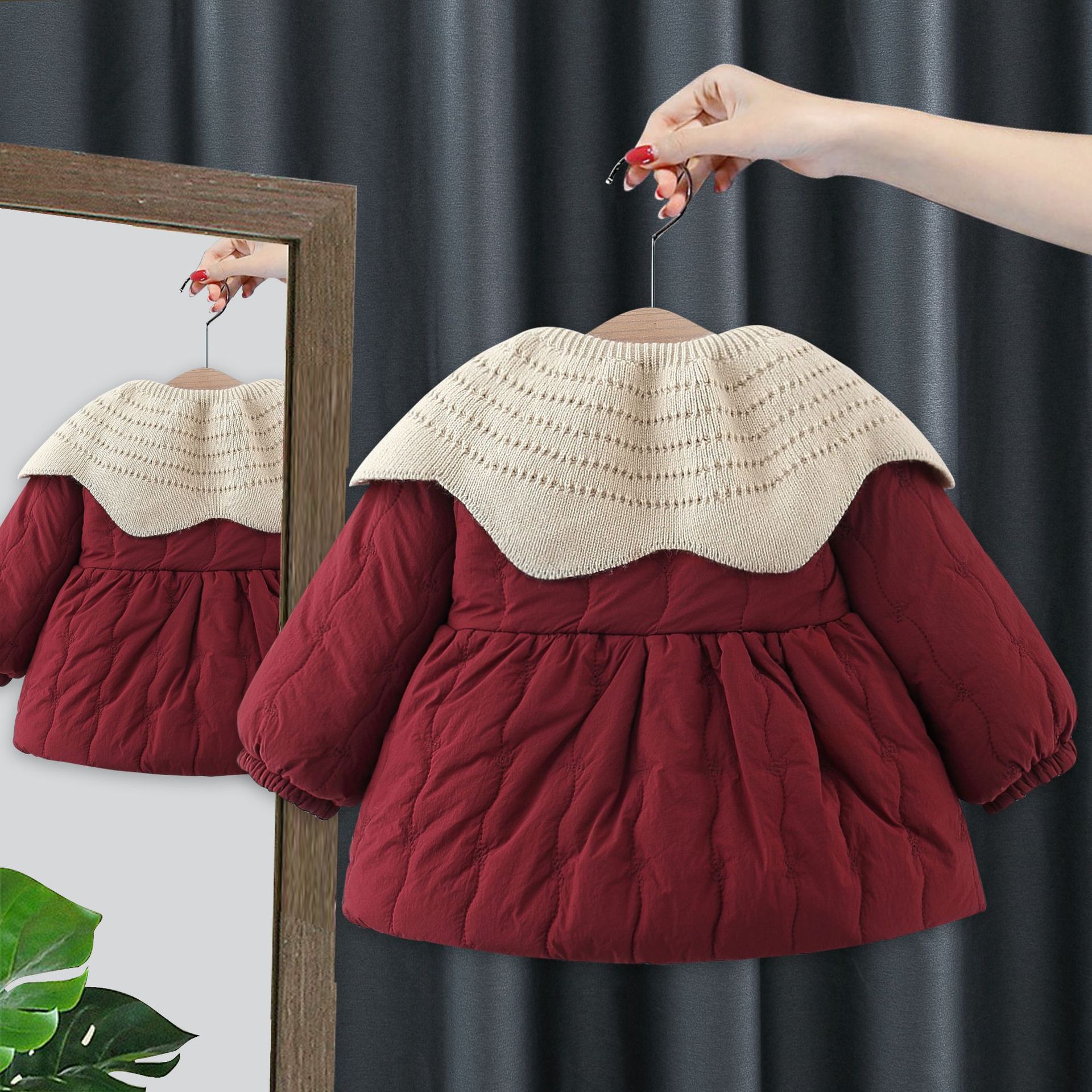아동면 패딩 의류 소녀 가을과 겨울 새로운 여성 아기 서양식 양모 칼라면 패딩 재킷 소녀 기모 패딩 재킷 코트 5047