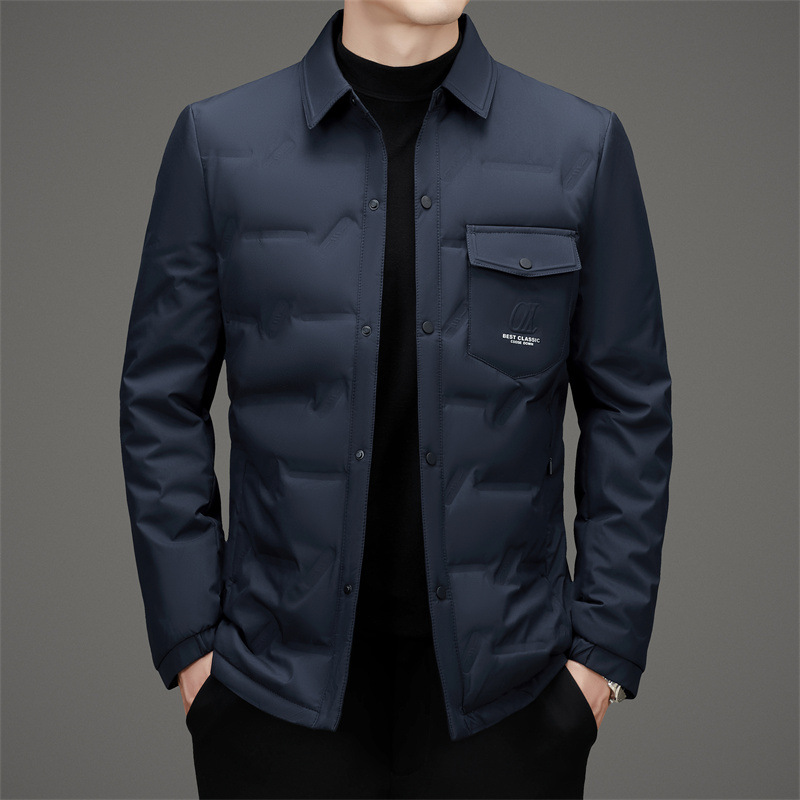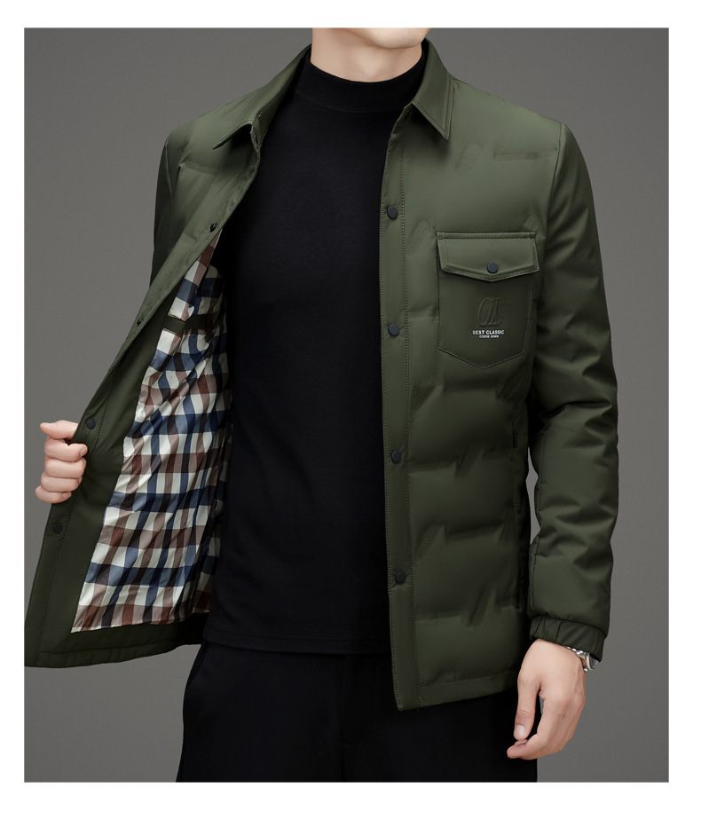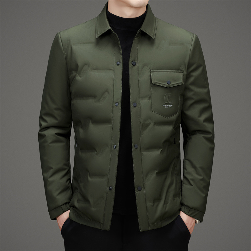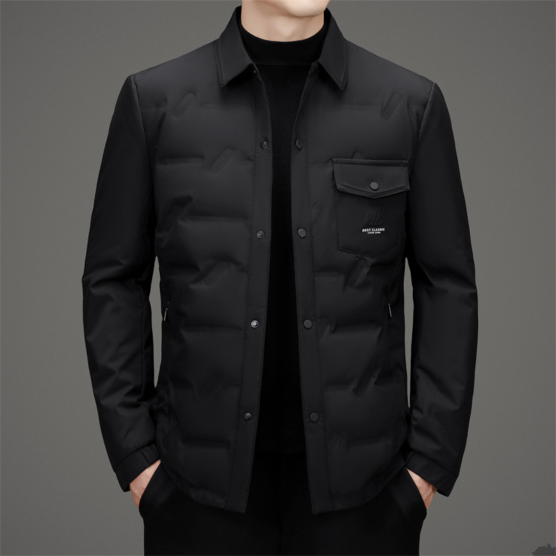 2024 겨울 한국 스타일 새로운 솔리드 컬러 랩 캐주얼 따뜻한 다운 재킷 남자의 빛과 잘 생긴 간단한 유행 재킷