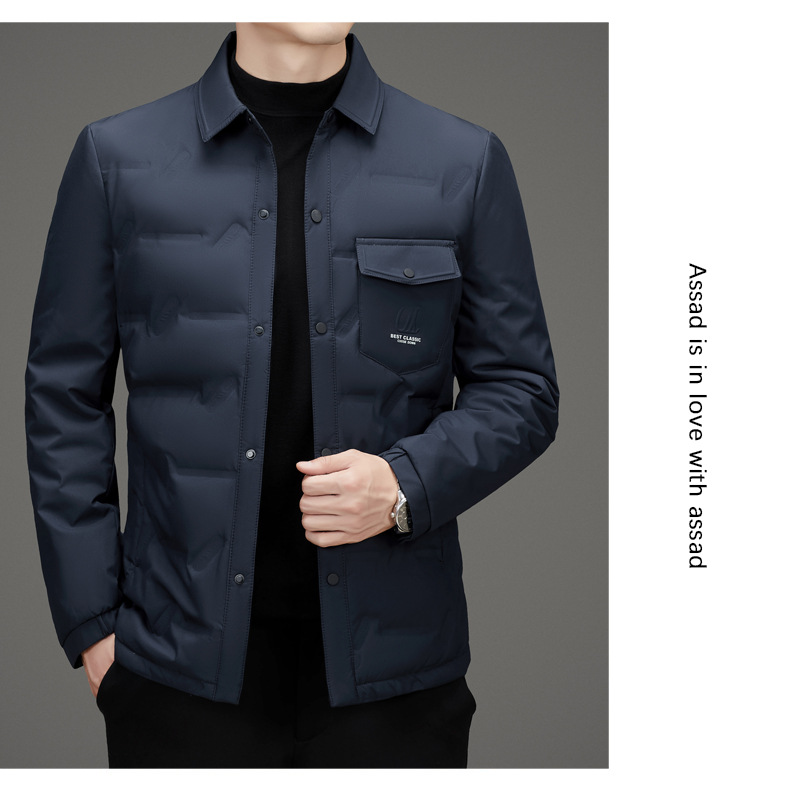 2024 겨울 한국 스타일 새로운 솔리드 컬러 랩 캐주얼 따뜻한 다운 재킷 남자의 빛과 잘 생긴 간단한 유행 재킷스토어 가기