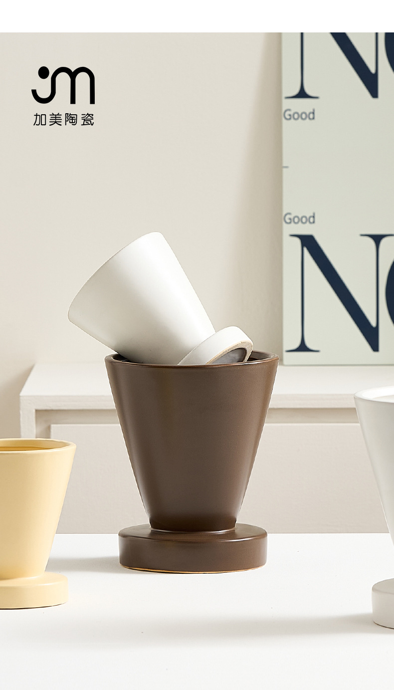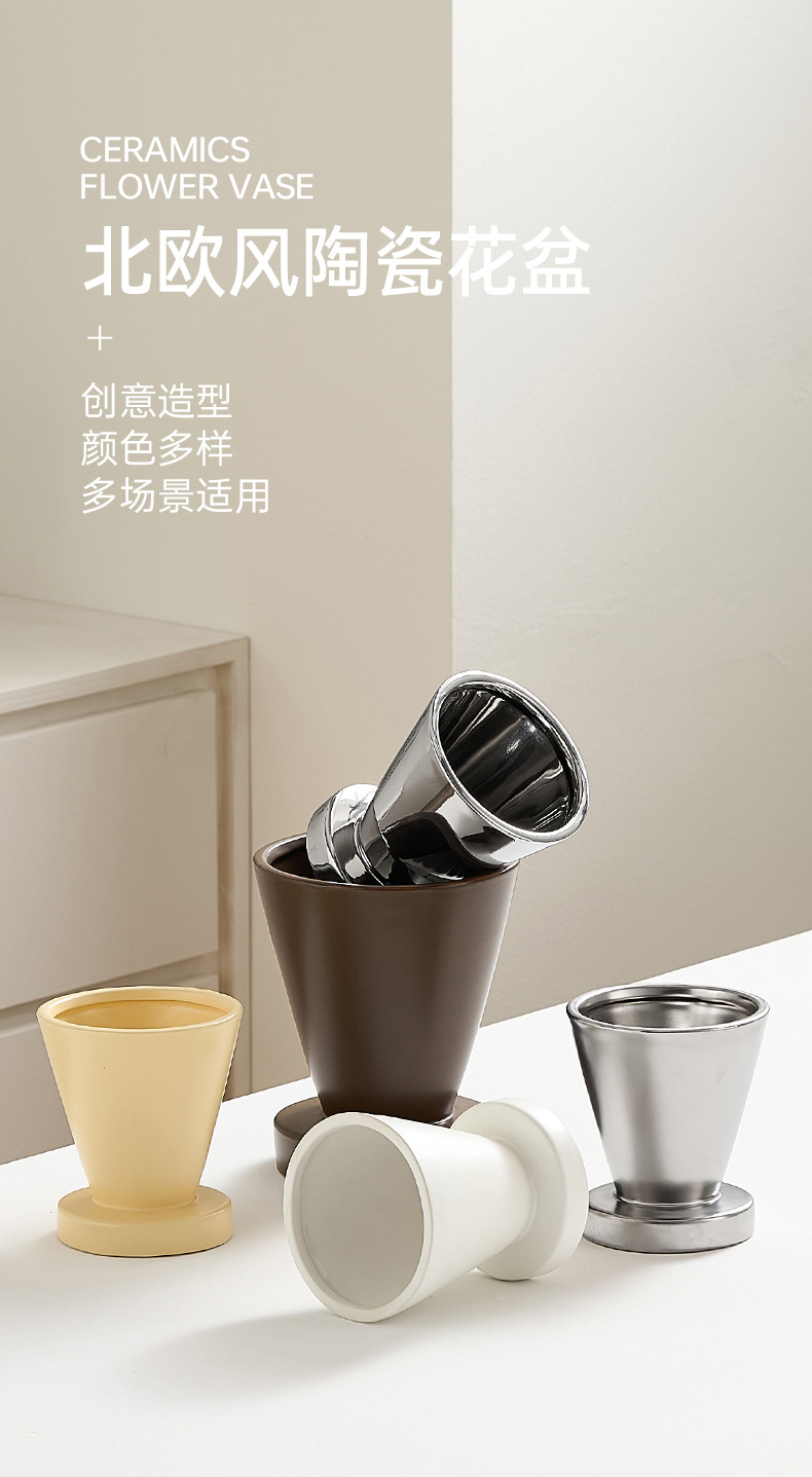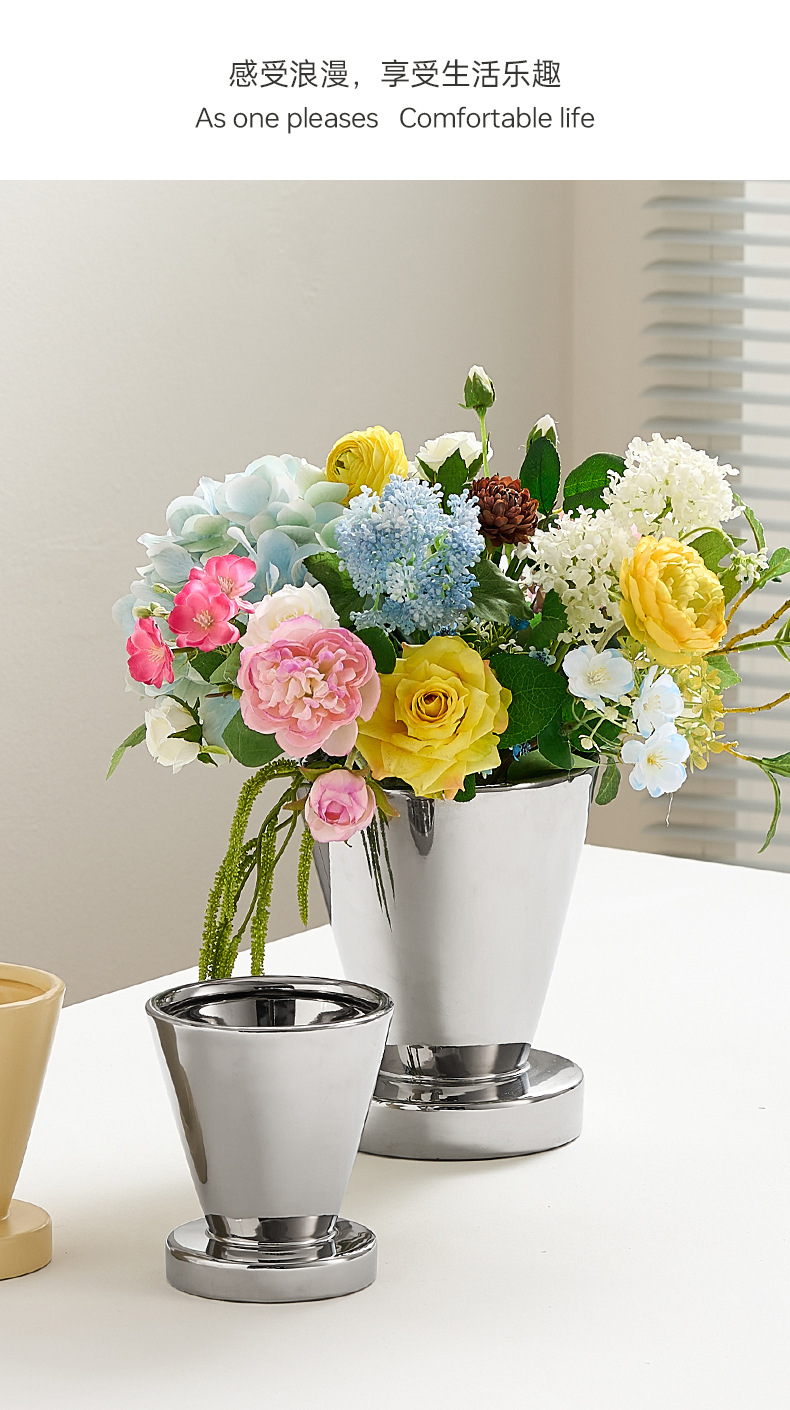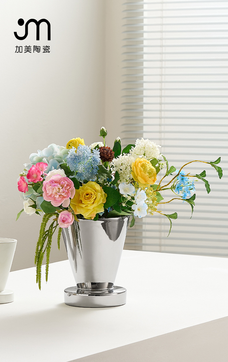 현대 Ins 간단한 스타일 창조적 인 세라믹 꽃병 홈 가구 카운터 탑 화분 용기 호접란 인공 꽃 적합