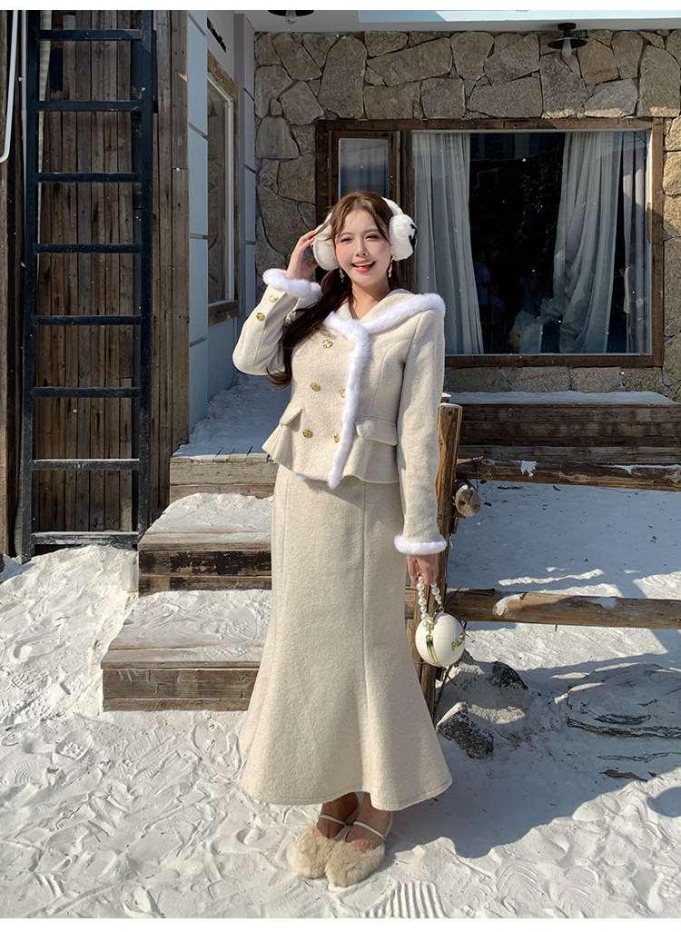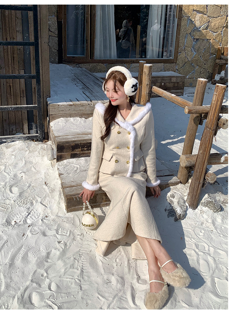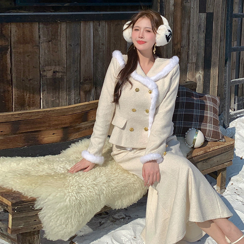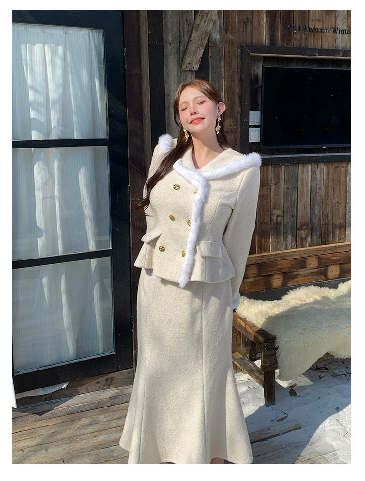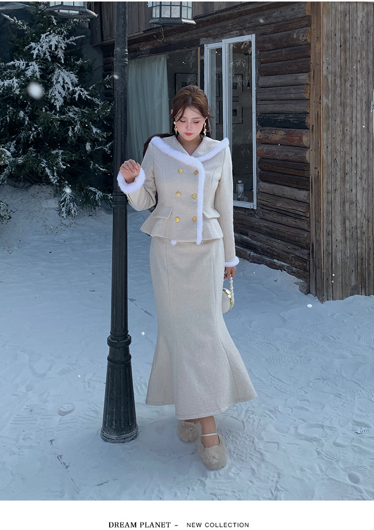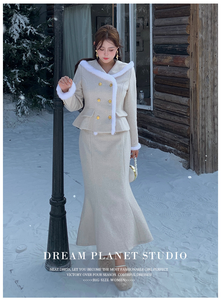 플러스 사이즈 여자 하이 엔드 프랑스 레트로 사교계 우아한 샤넬 화이트 세트 트위드 투피스 1992스토어 가기