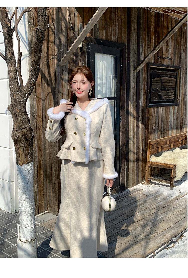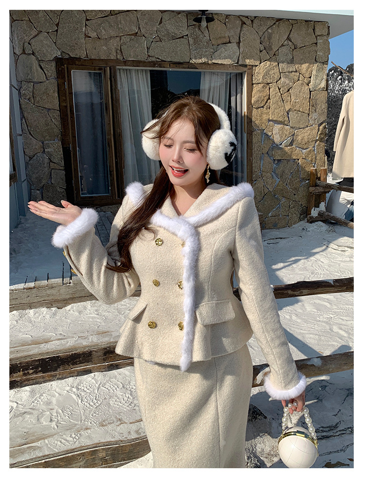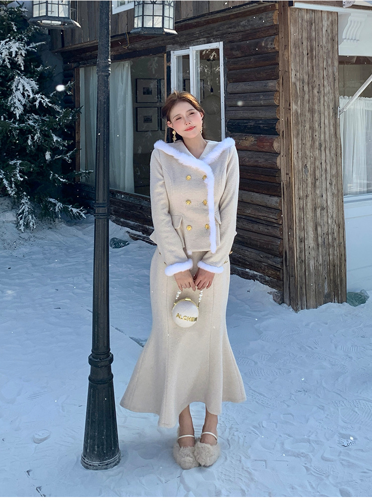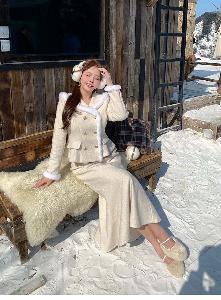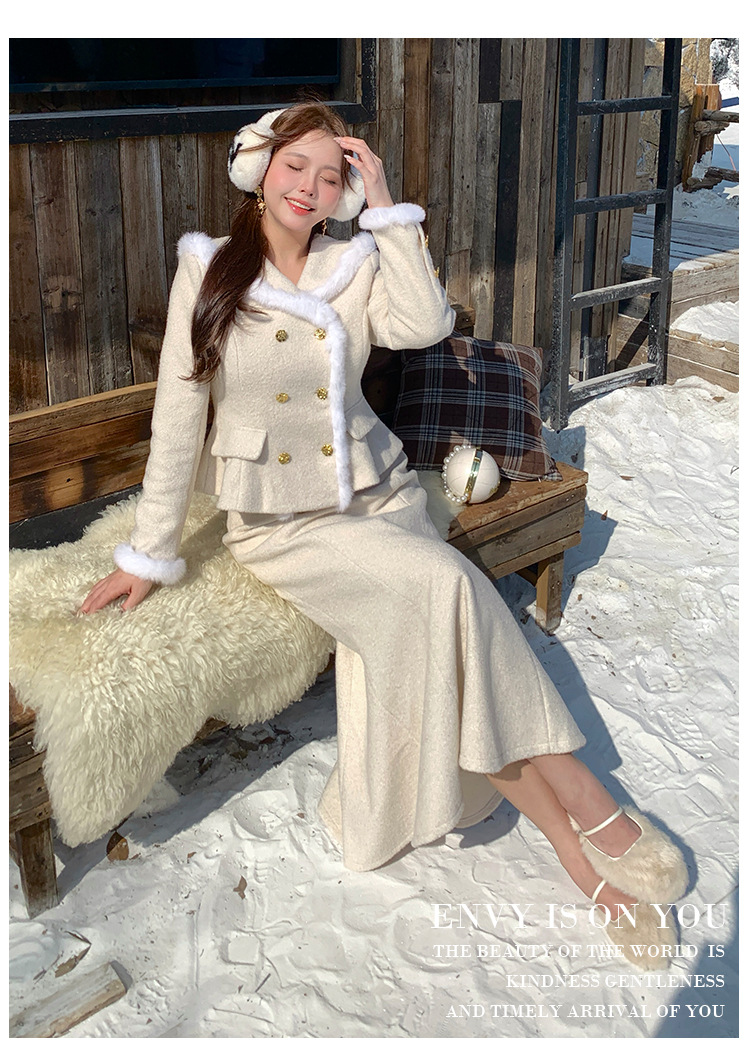 플러스 사이즈 여자 하이 엔드 프랑스 레트로 사교계 우아한 샤넬 화이트 세트 트위드 투피스 1992스토어 가기