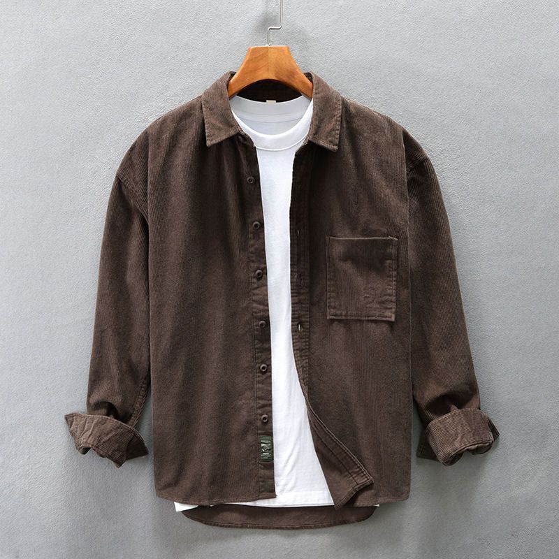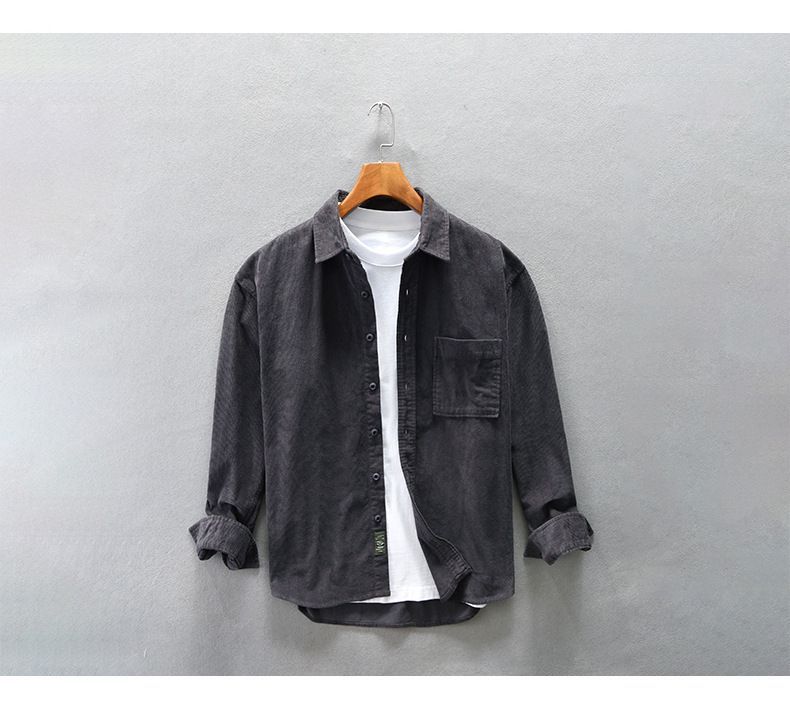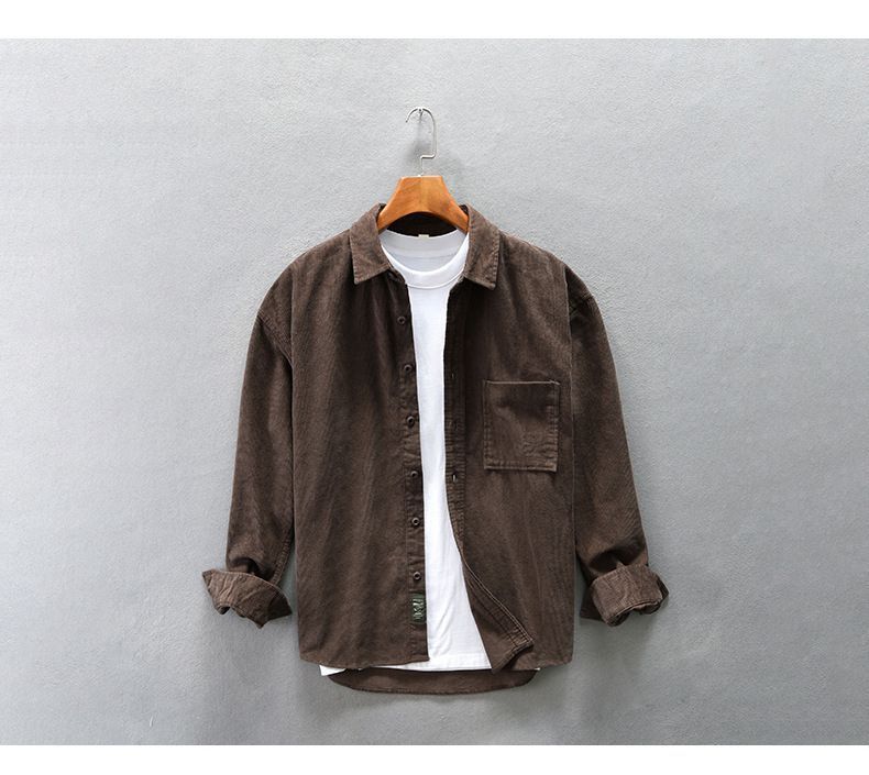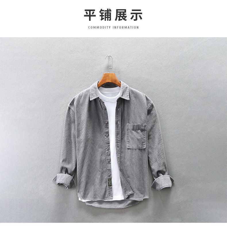 일본 코듀로이 긴팔 셔츠 남성 작업복 봄 가을 간단한 청소년 홍콩 스타일 느슨한 캐주얼 셔츠 트렌디스토어 가기
