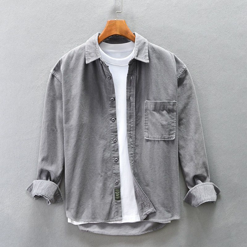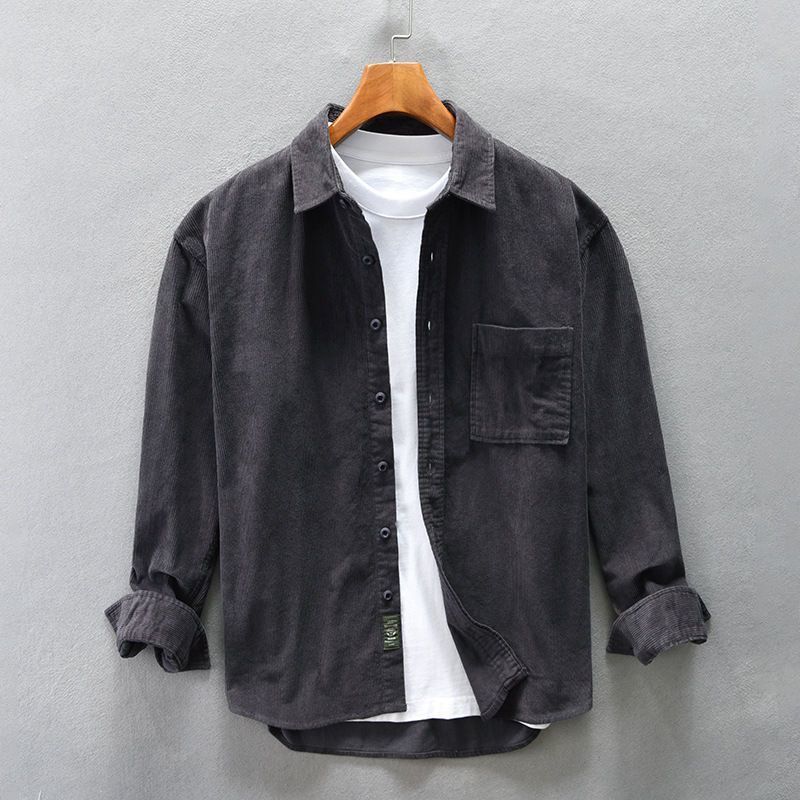 일본 코듀로이 긴팔 셔츠 남성 작업복 봄 가을 간단한 청소년 홍콩 스타일 느슨한 캐주얼 셔츠 트렌디