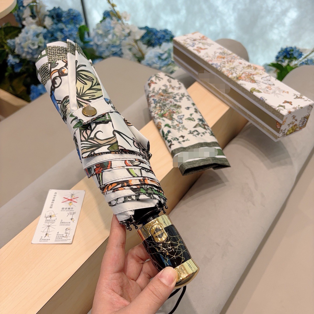 새로운 중국 스타일 완전 자동 맑고 비오는 우산 D 홈 나비 밀 귀 인쇄 검은 접착제 태양 차단 우산스토어 가기