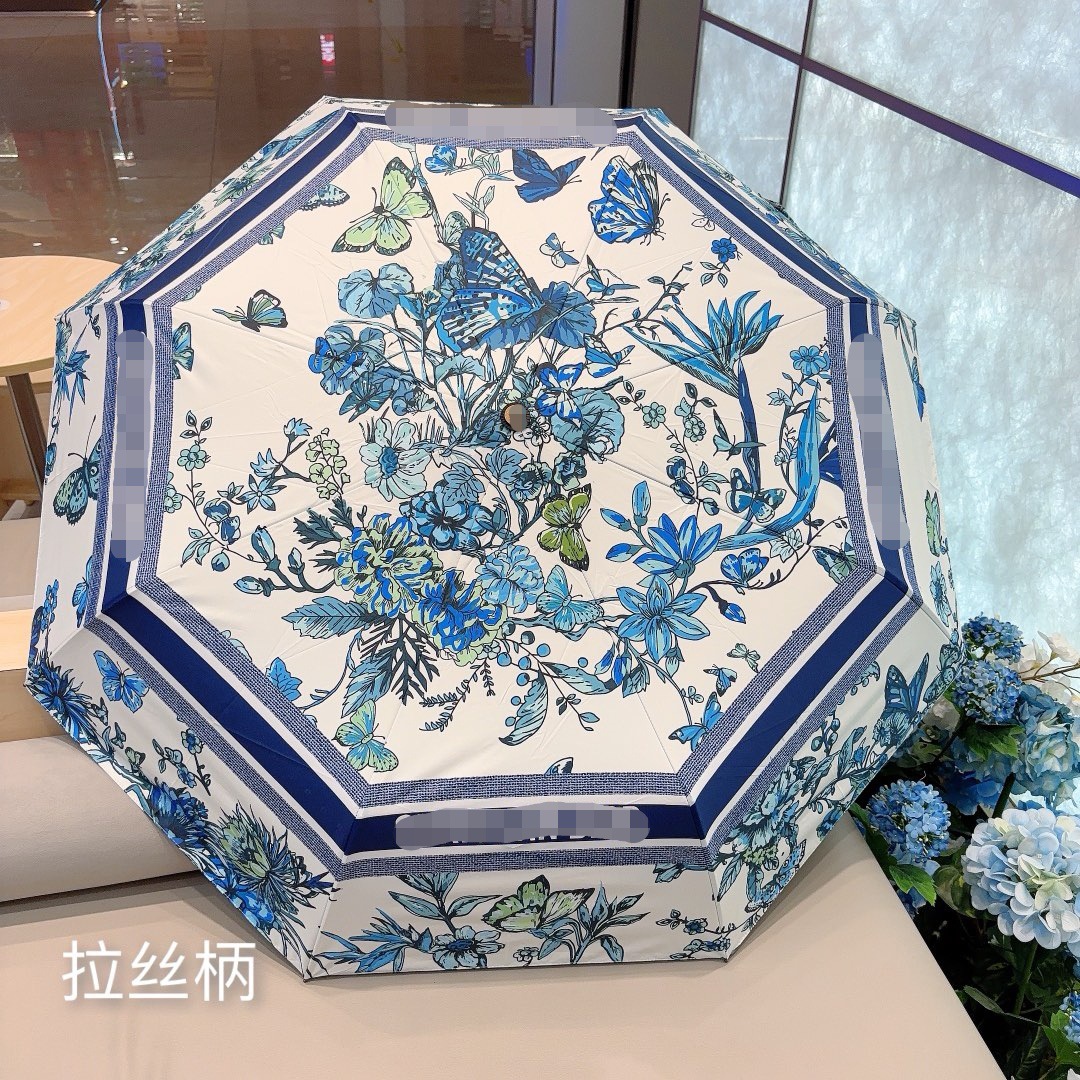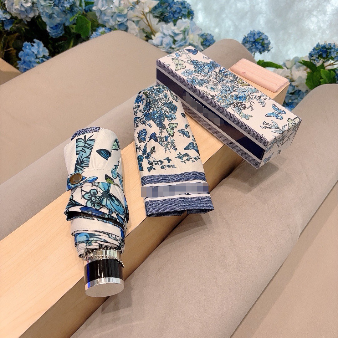 새로운 중국 스타일 완전 자동 맑고 비오는 우산 D 홈 나비 밀 귀 인쇄 검은 접착제 태양 차단 우산