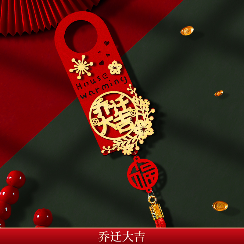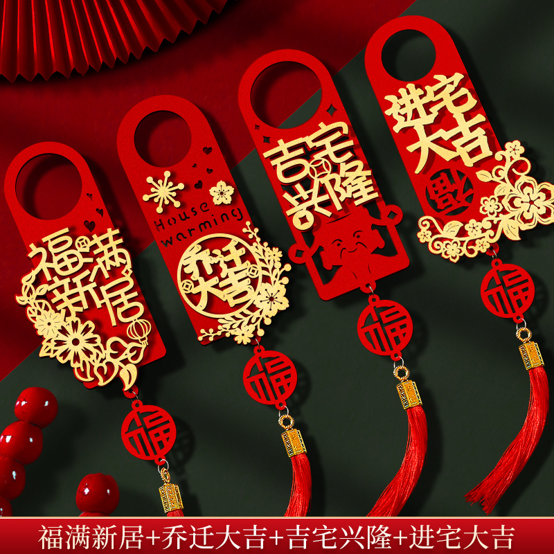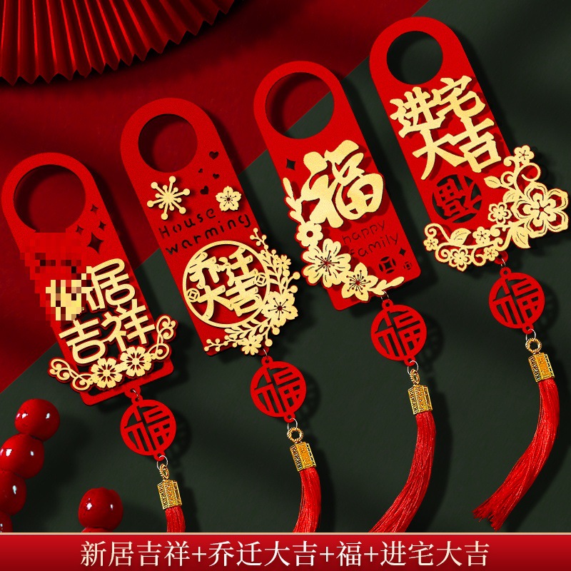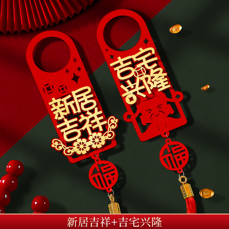 • 새 집의 길조 + 행운의 집이 번영합니다 - 술 문 손잡이 장식