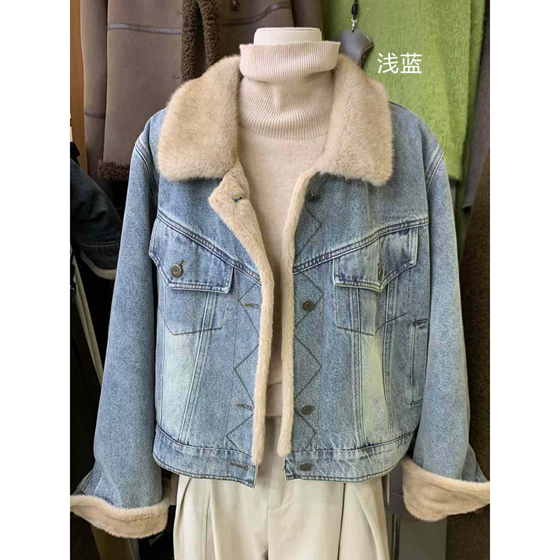 MMC 데님 코트 여자 13 라인 겨울 뉴 기모 두꺼운 하이 레벨 스티칭 레트로 쇼트 재킷