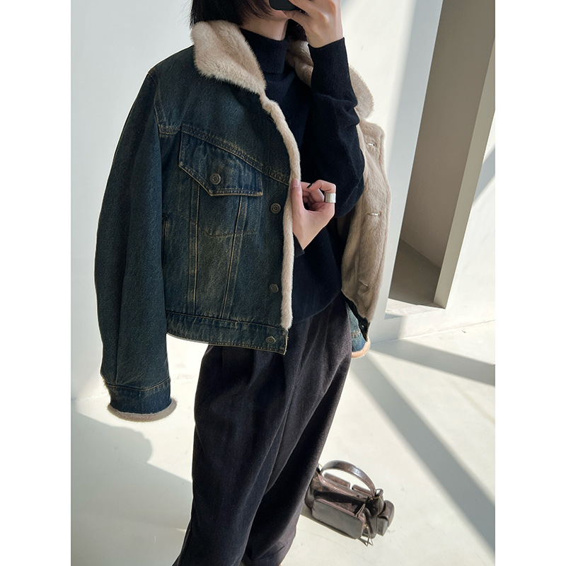 MMC 데님 코트 여자 13 라인 겨울 뉴 기모 두꺼운 하이 레벨 스티칭 레트로 쇼트 재킷스토어 가기