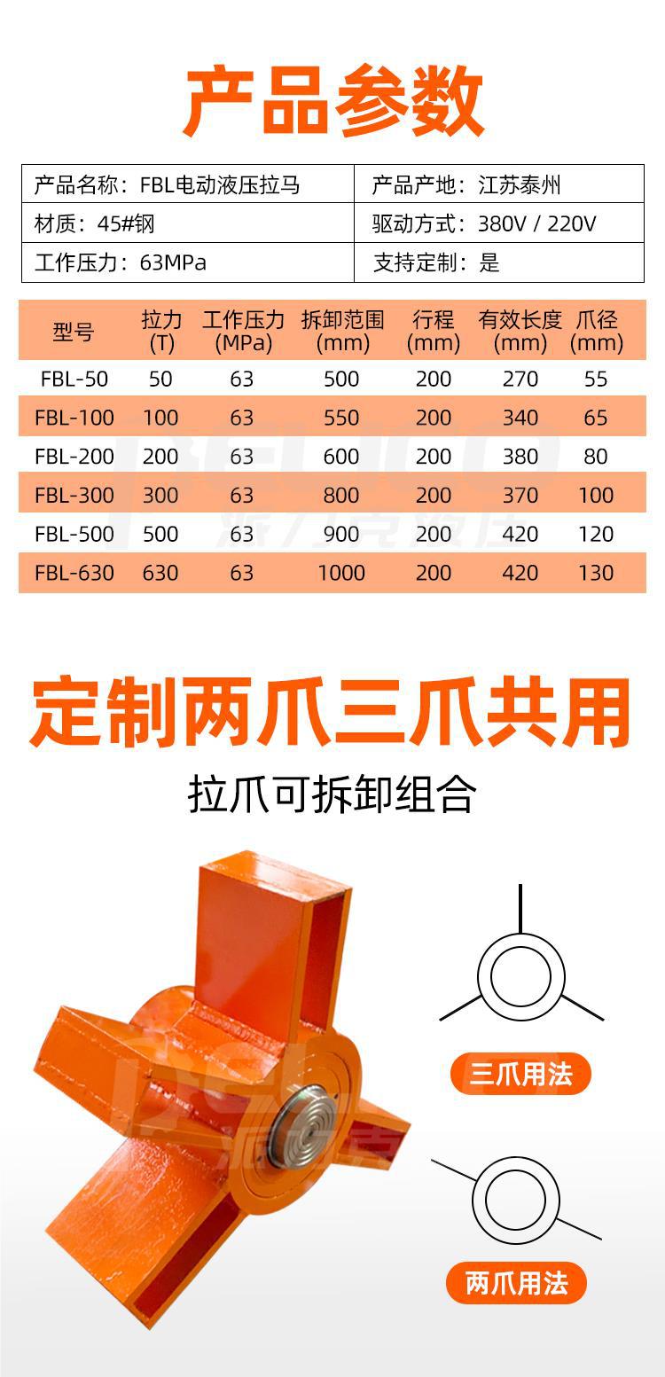 FBL 전기 유압 풀러 자동차 리프팅 차량 장착 풀러 풀리 50T100T200T300 톤