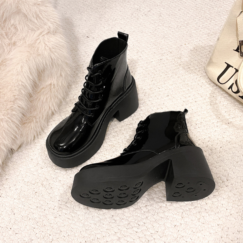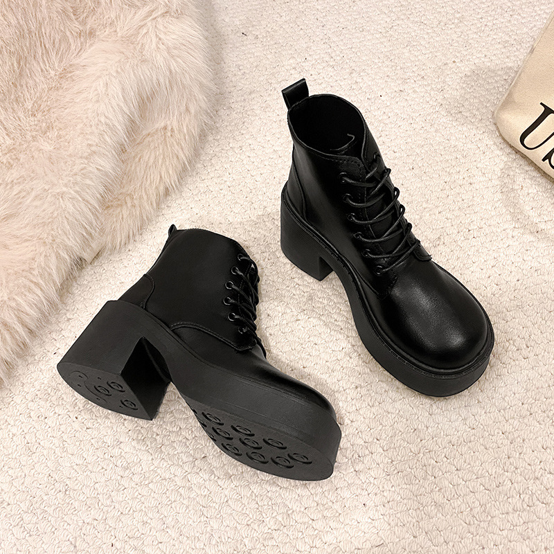 두꺼운 굽의 영국 스타일 마틴 부츠 2025 가을 겨울 신상 패션 레이스업 여성 부츠 대외 무역 크로스보더 로우컷 하이힐 부츠스토어 가기