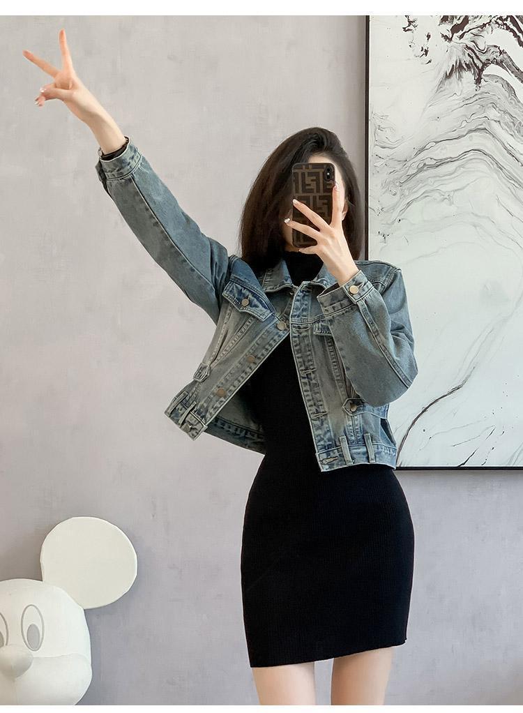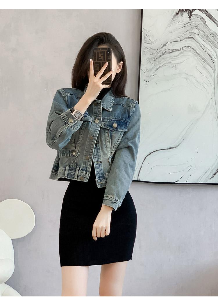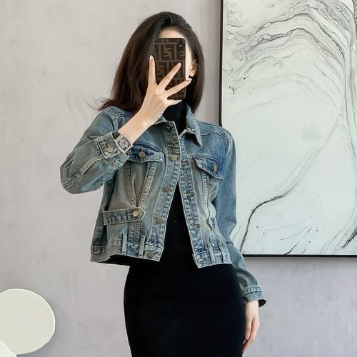 디자인 센스 긴 소매 데님 재킷 여성의 가을 2023 새로운 느슨한 외부 원피스 짧은 재킷 트렌디스토어 가기