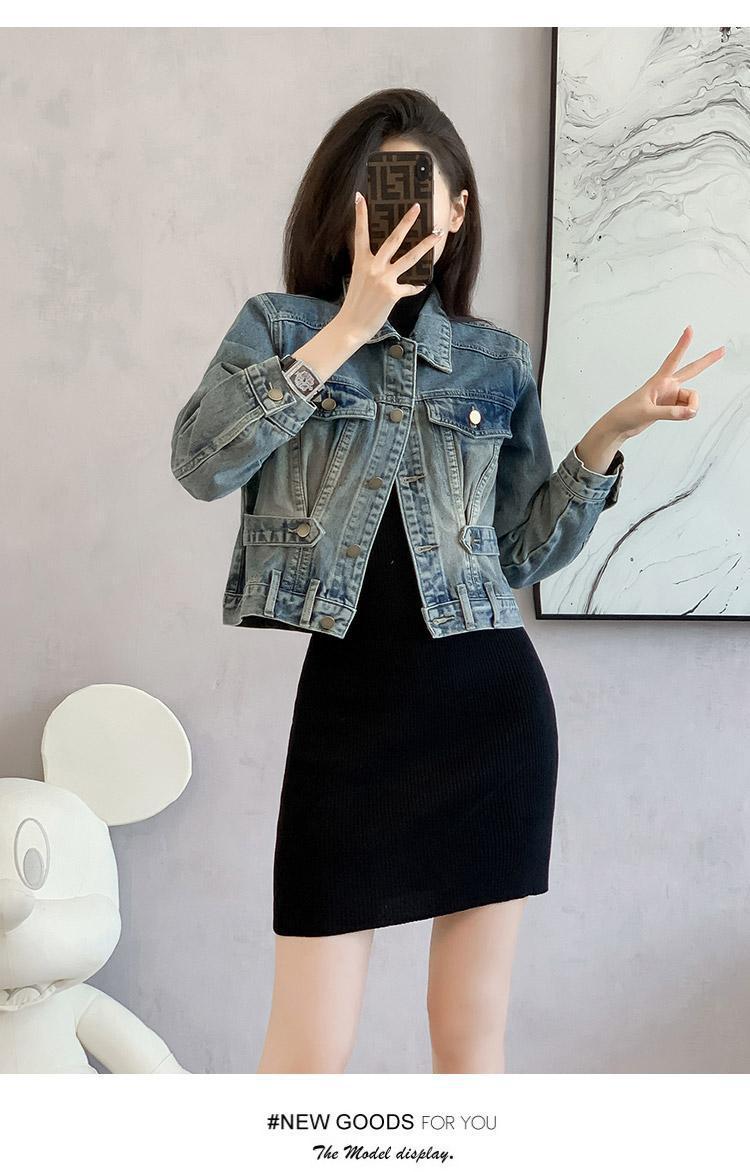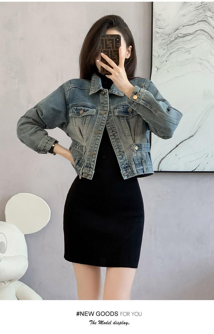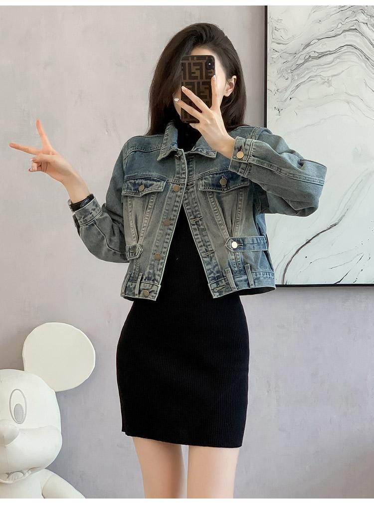 디자인 센스 긴 소매 데님 재킷 여성의 가을 2023 새로운 느슨한 외부 원피스 짧은 재킷 트렌디
