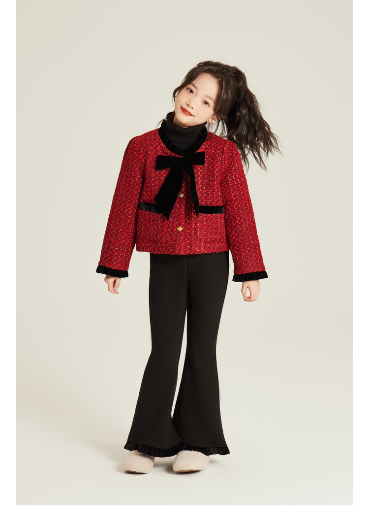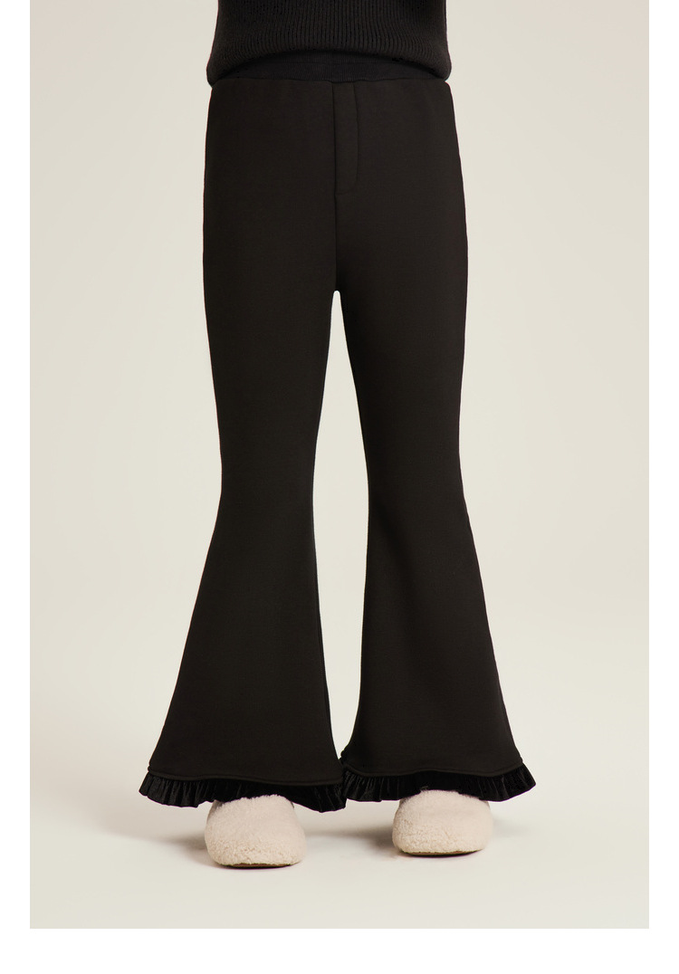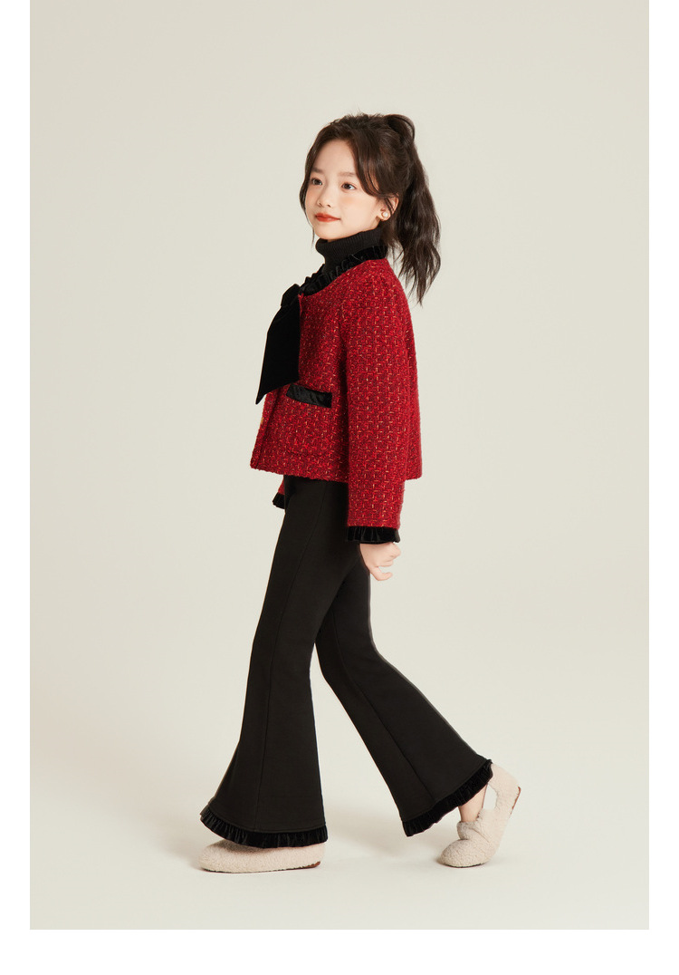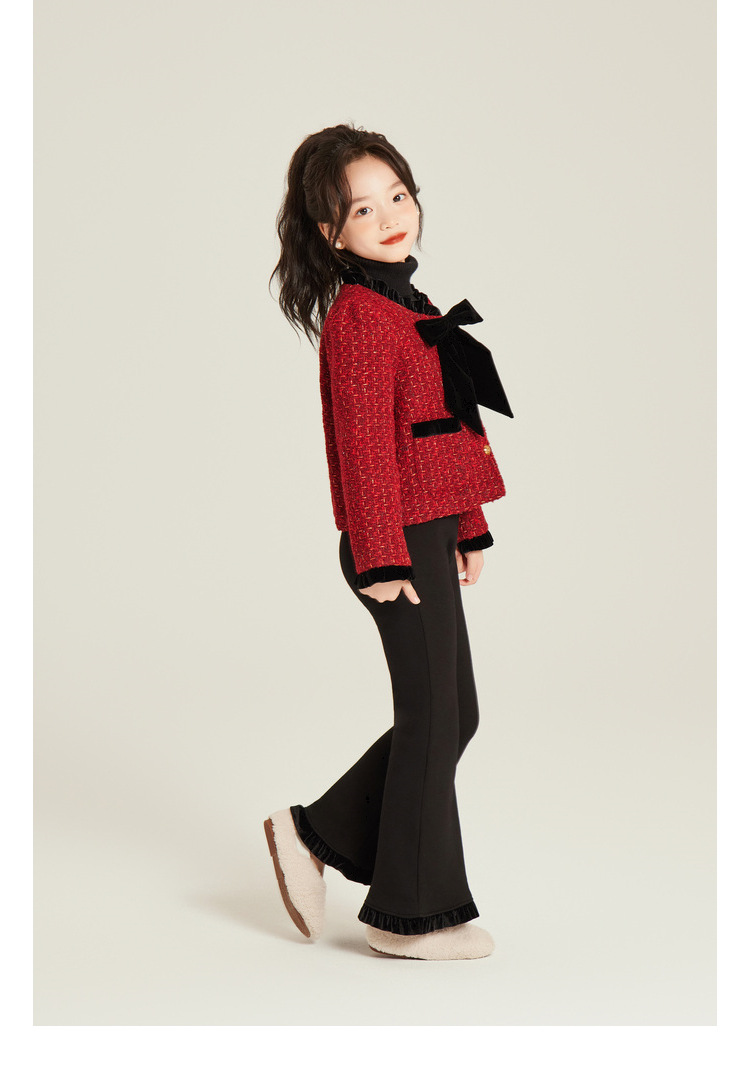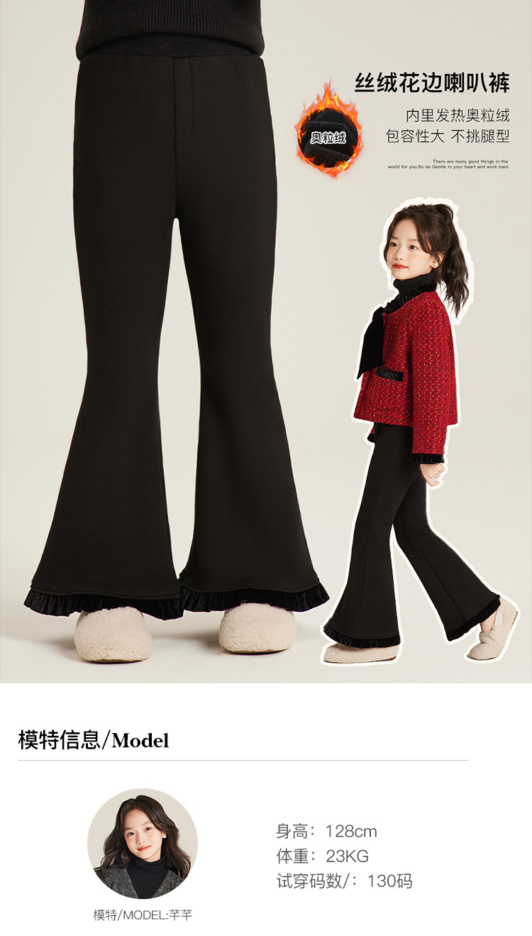 Amybaby 여자 바지 겨울 2024 새로운 어린이 드레이프 높은 허리 벨벳 가장자리 슬림 플레어 바지