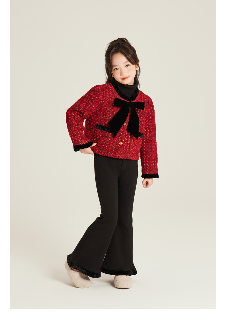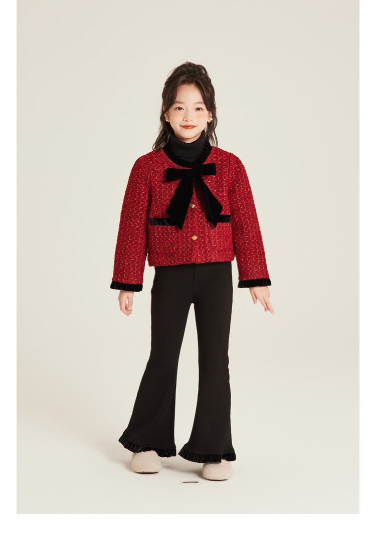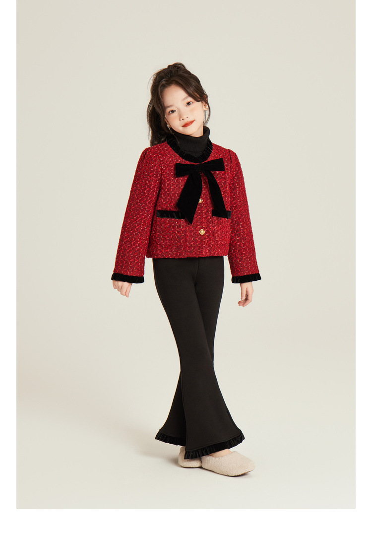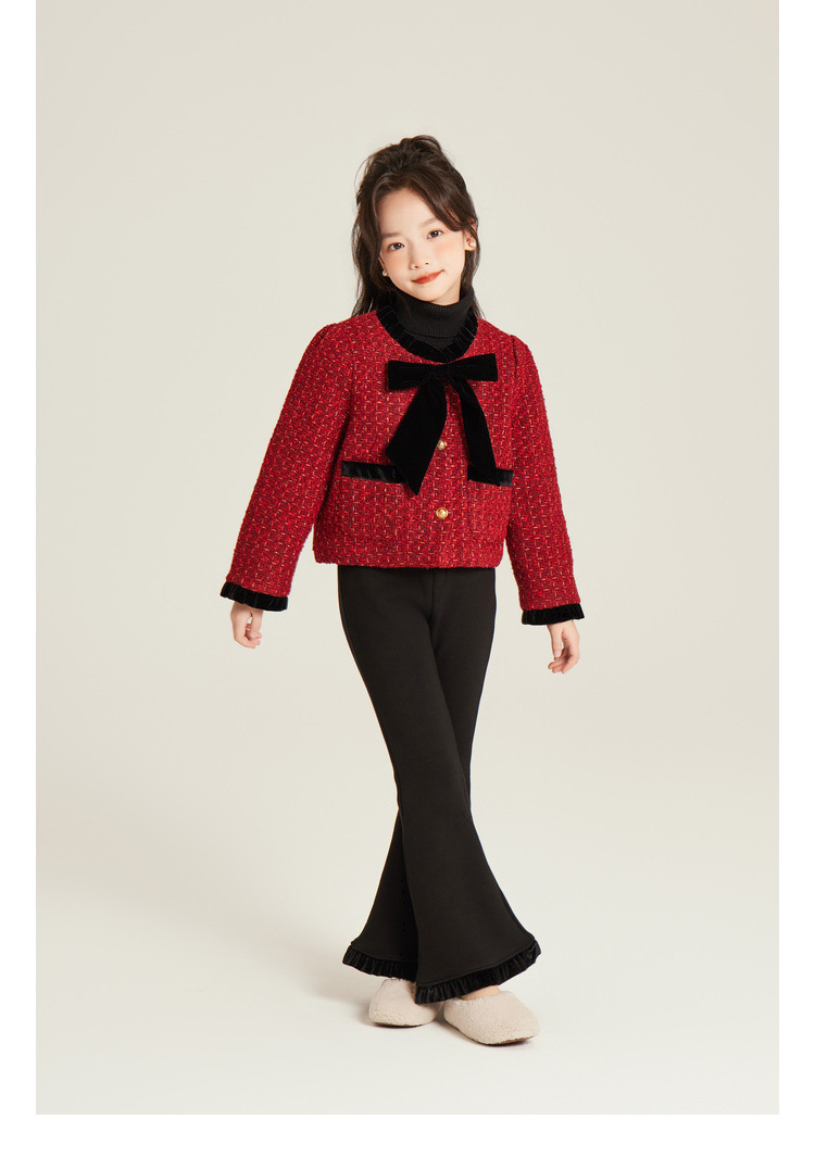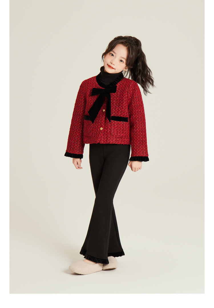 Amybaby 여자 바지 겨울 2024 새로운 어린이 드레이프 높은 허리 벨벳 가장자리 슬림 플레어 바지