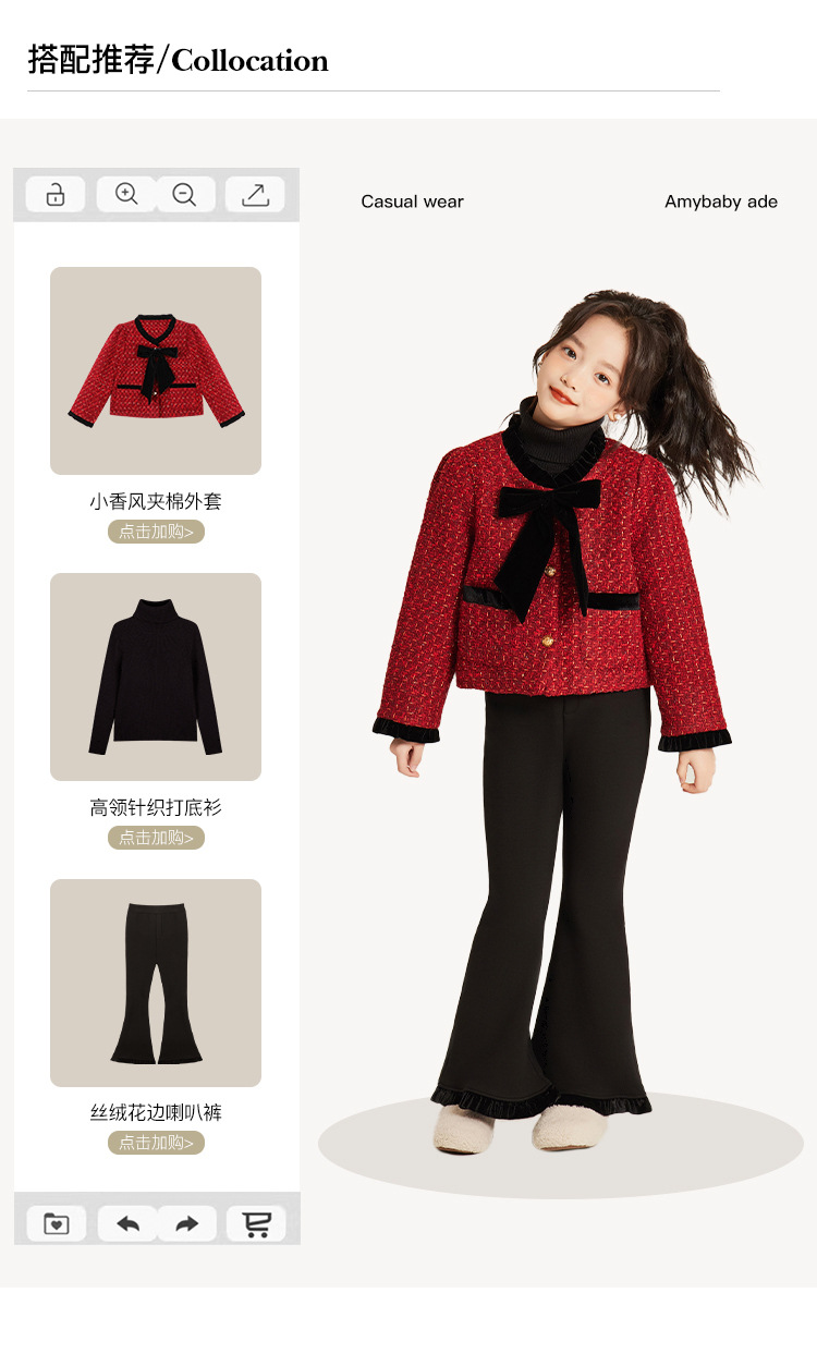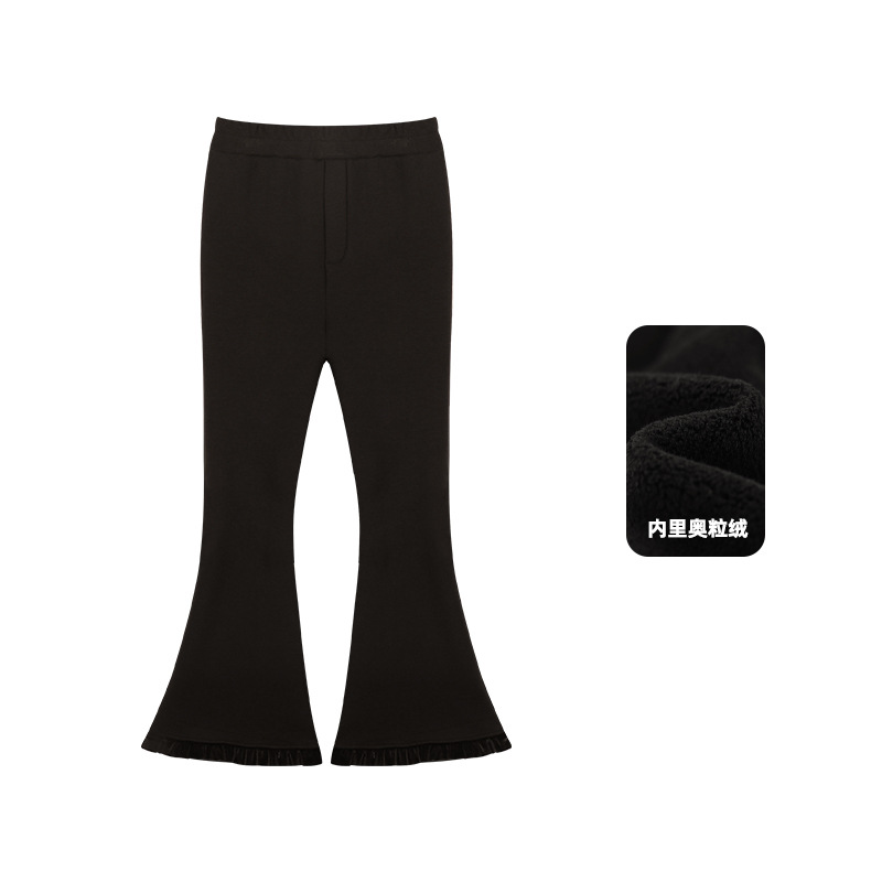 Amybaby 여자 바지 겨울 2024 새로운 어린이 드레이프 높은 허리 벨벳 가장자리 슬림 플레어 바지스토어 가기