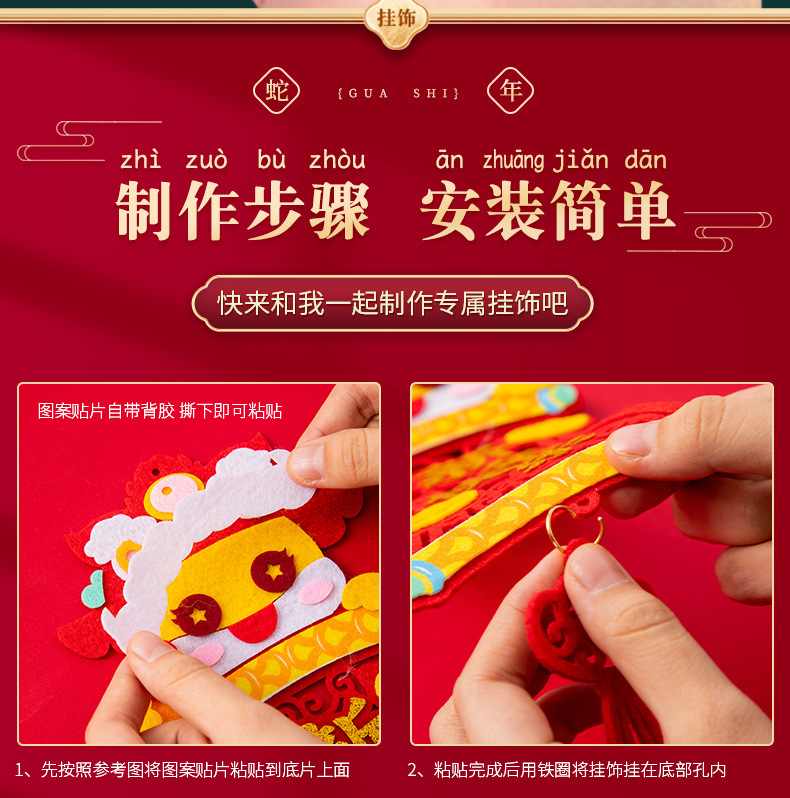 새해 봄 축제 선물 어린이 유치원 수제 DIY 소재 가방 뱀 펜던트의 해스토어 가기