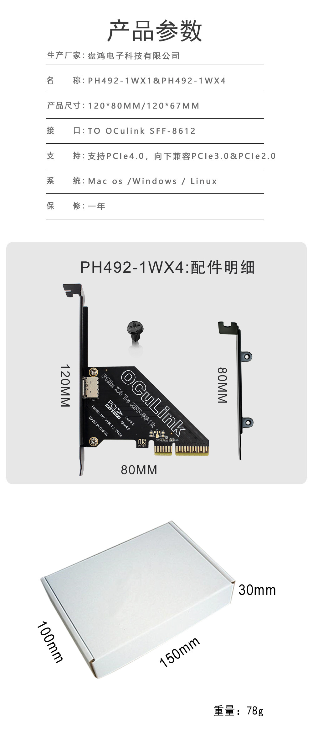 PCIe X4 4.0 Oculink SFF8611 & 8612 확장 카드 외부 U.2SSD 외부 그래픽 카드스토어 가기