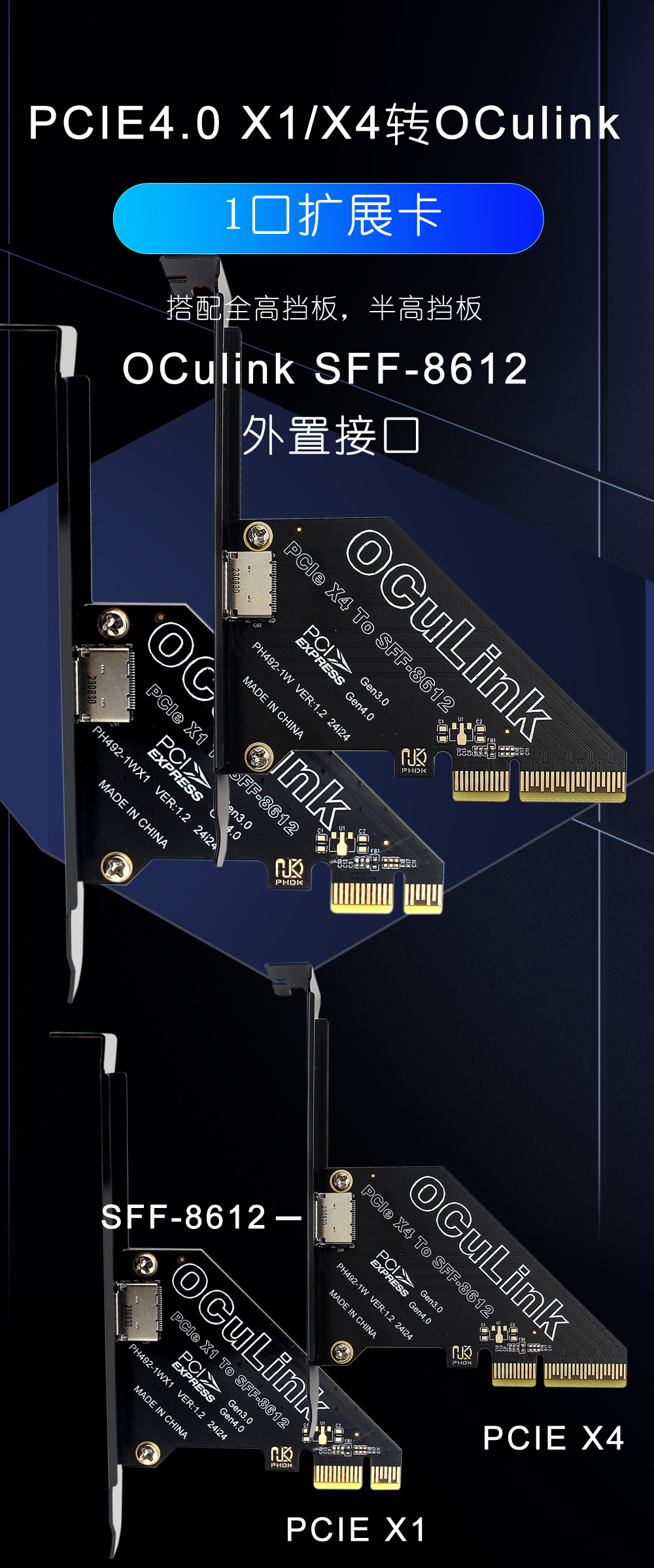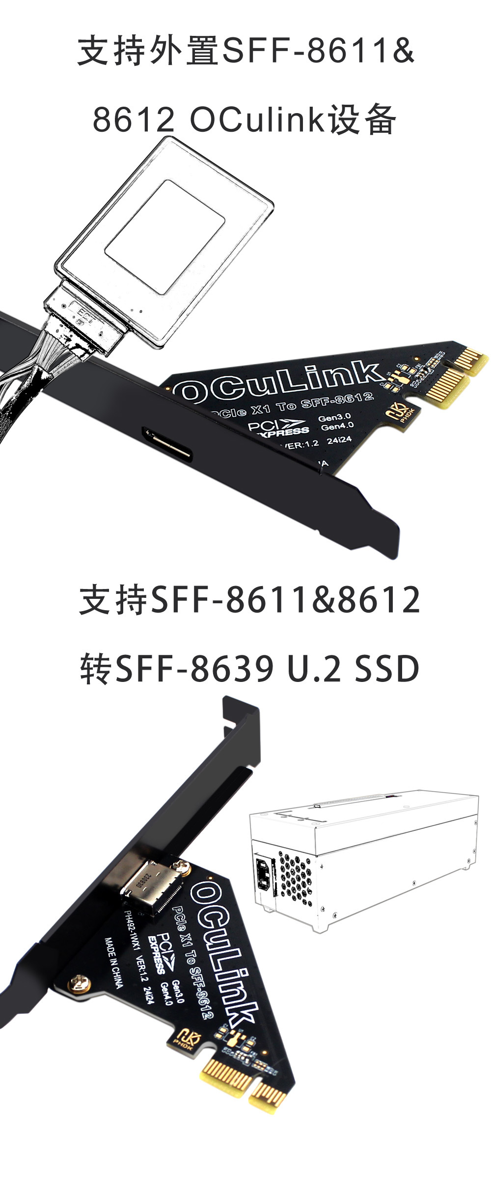 PCIe X4 4.0 Oculink SFF8611 & 8612 확장 카드 외부 U.2SSD 외부 그래픽 카드