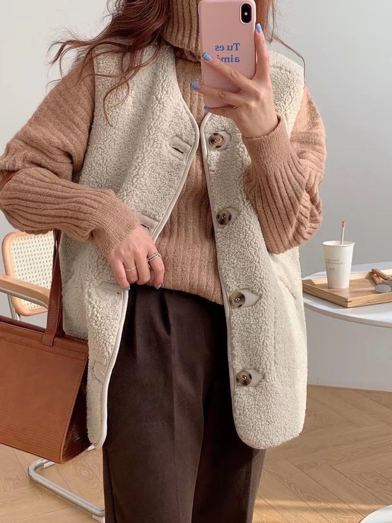 여성용 조끼 자켓 2025 가을 겨울 신상 양털 느낌의 퍼 원피스 루즈핏 한국 스타일 민소매 조끼 트렌디