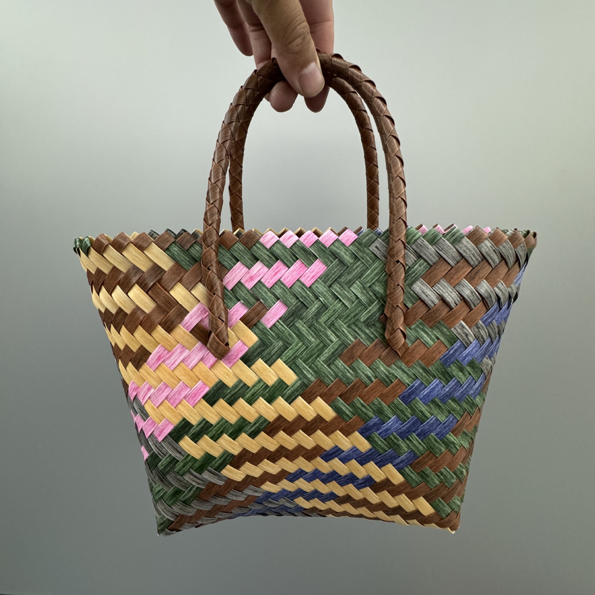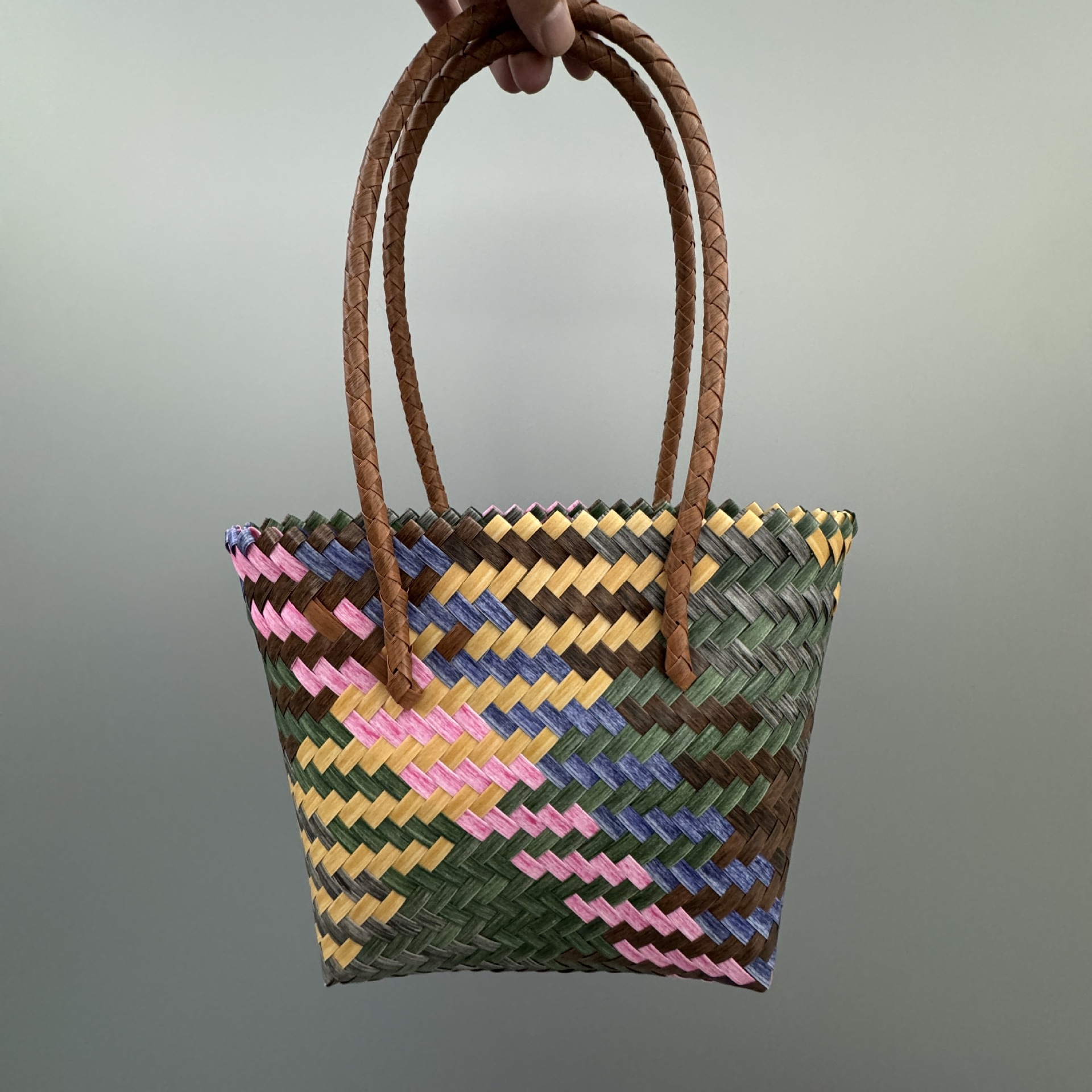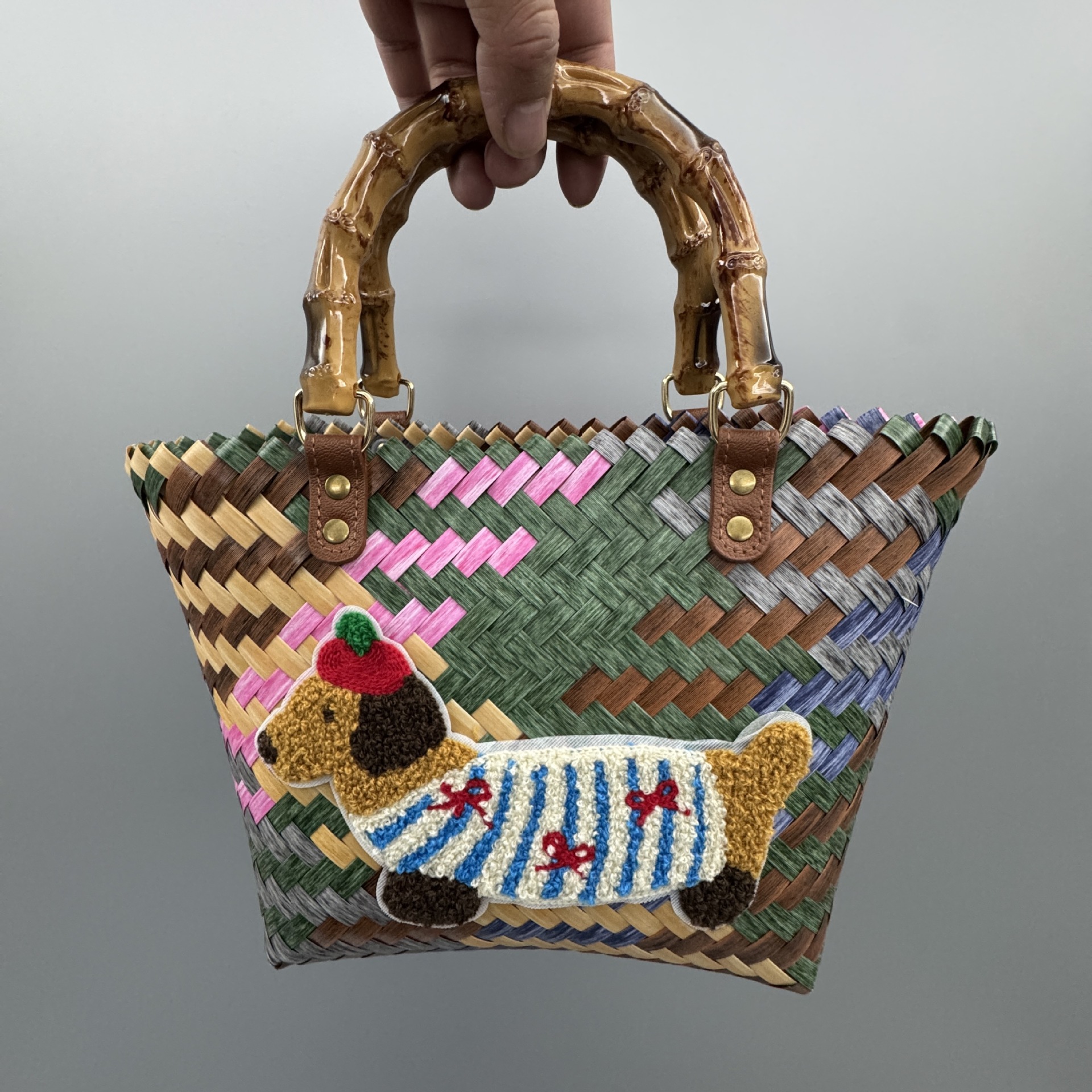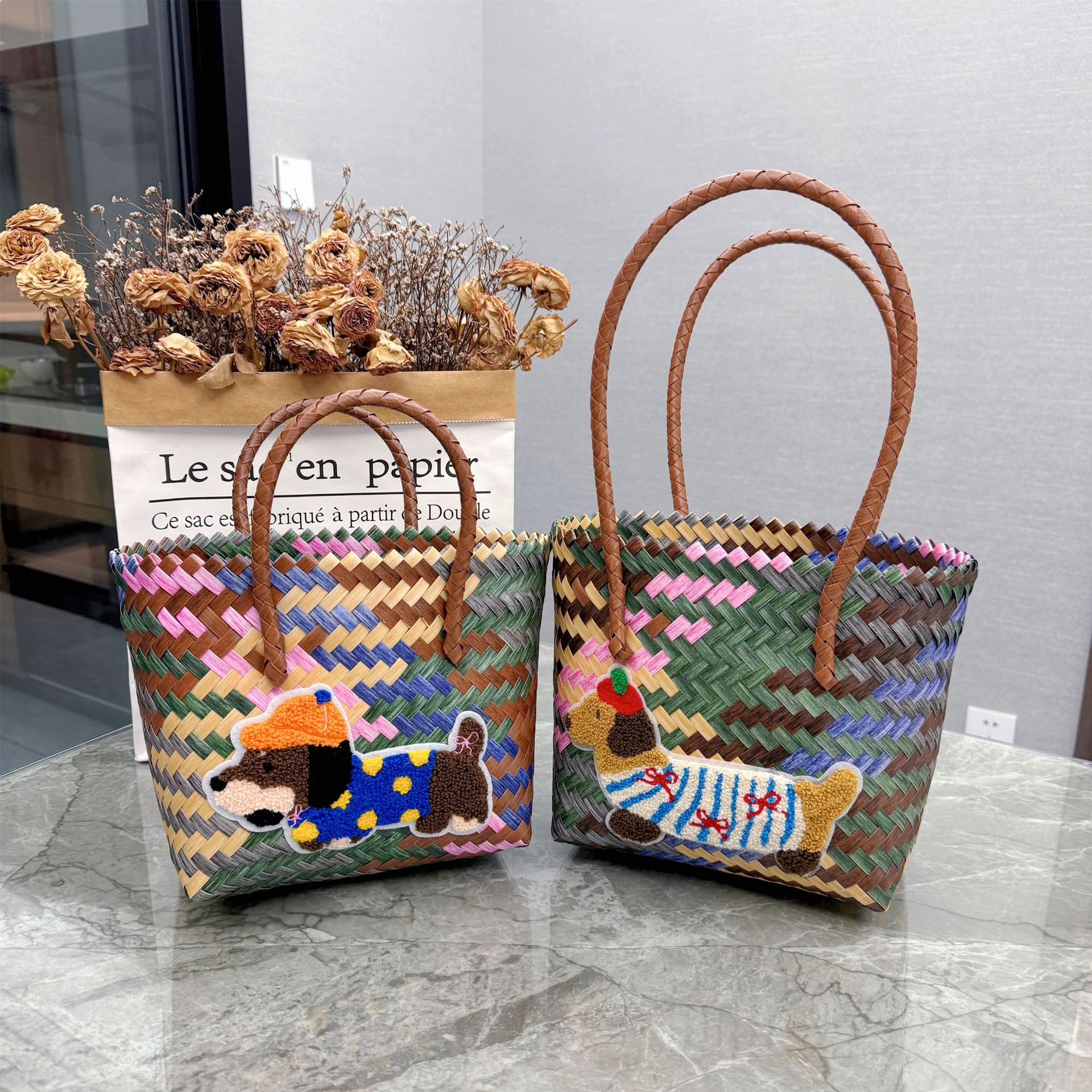 줄무늬 빈티지 닥스 훈트 재스민 짠 야채 바구니 2024 등나무 새 핸드백 통근 가방 어깨 가방