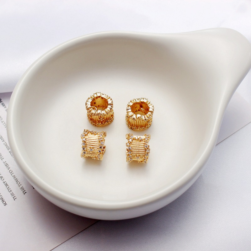14K 골드 컬러 유지 실버 무광택 골드 상감 지르콘 스티커 구슬 대형 홀 배럴 구슬 전송 구슬 DIY 팔찌 목걸이 액세서리