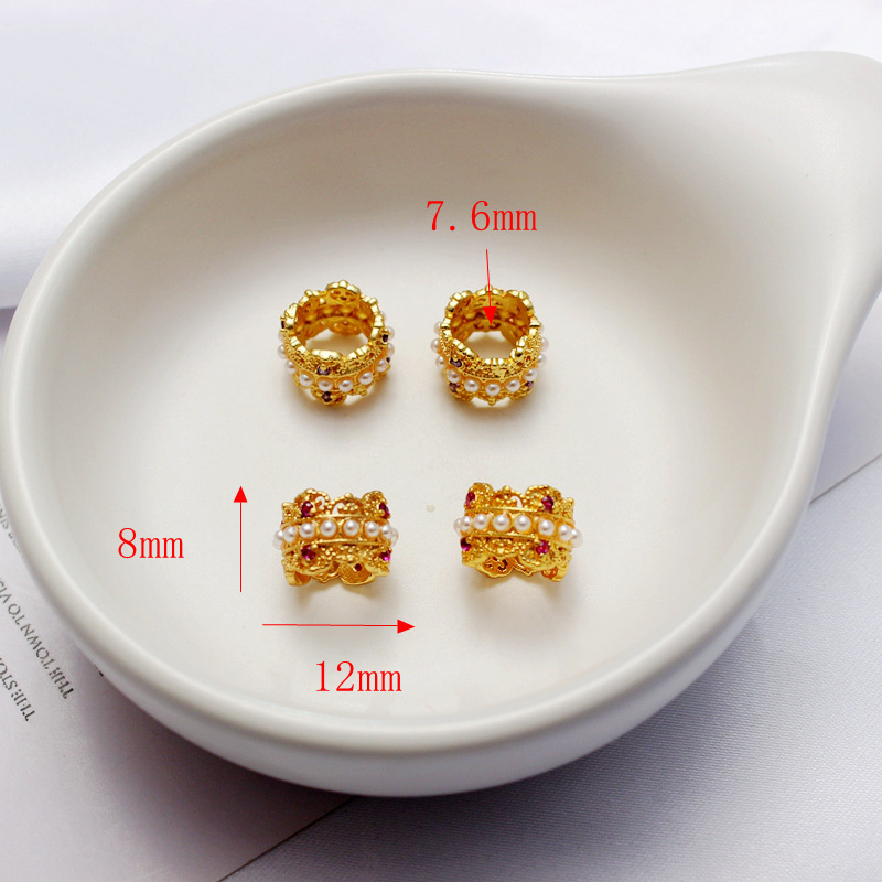 • 레드 지르콘 매트 골드 대형 홀 배럴 비드 외경 12mm