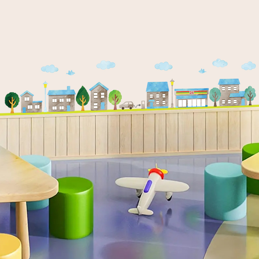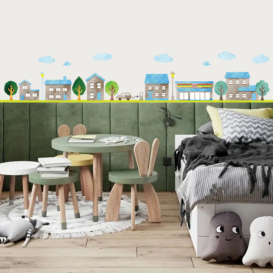 만화 청와대 타운 자기 접착 벽 스티커 간단한 Ins 스타일 어린이 방 침실 장식 스티커 BR1129E
