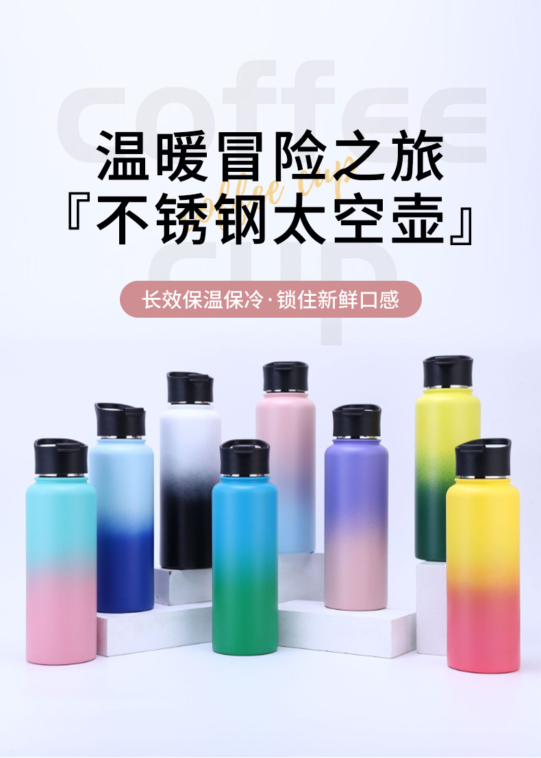 국경 32oz 대용량 공간 냄비 304 스테인레스 스틸 진공 휴대용 보온병 컵 야외 하이킹 물병