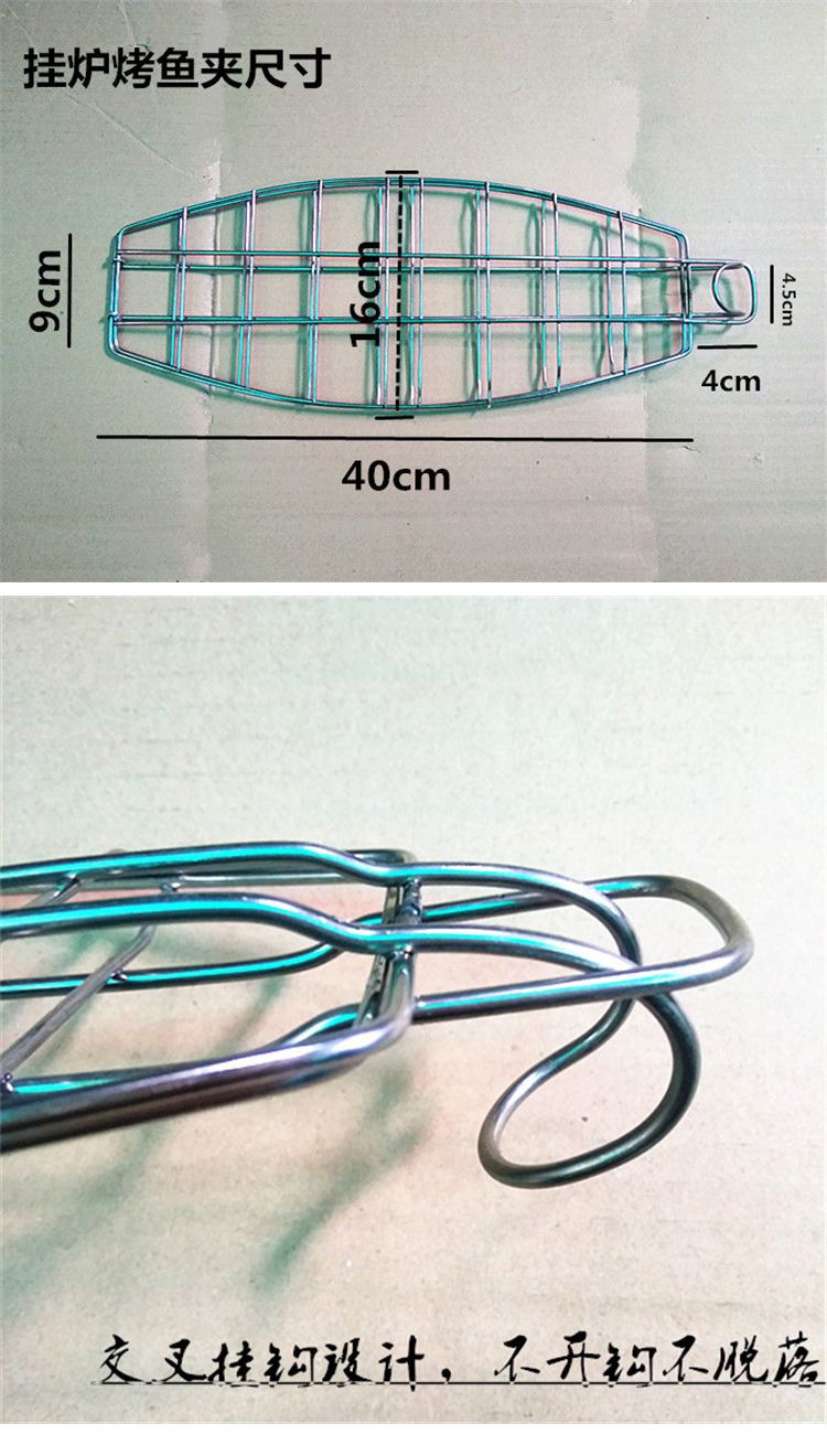 스테인레스 스틸 구운 생선 클립 상업용 굵은 바베큐 랙 대형 바베큐 그물 구운 생선 클립 교수형 생선 핑 런