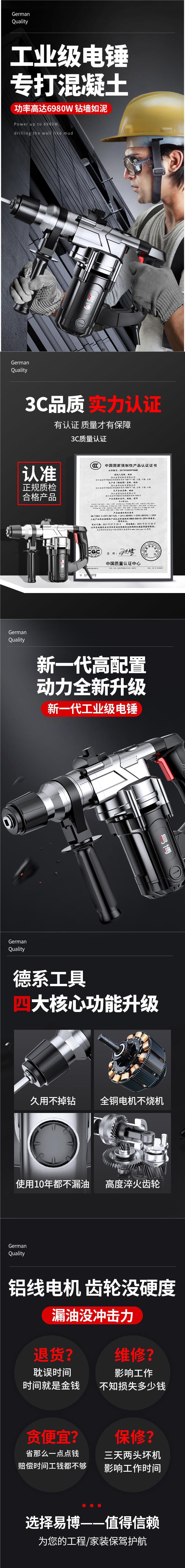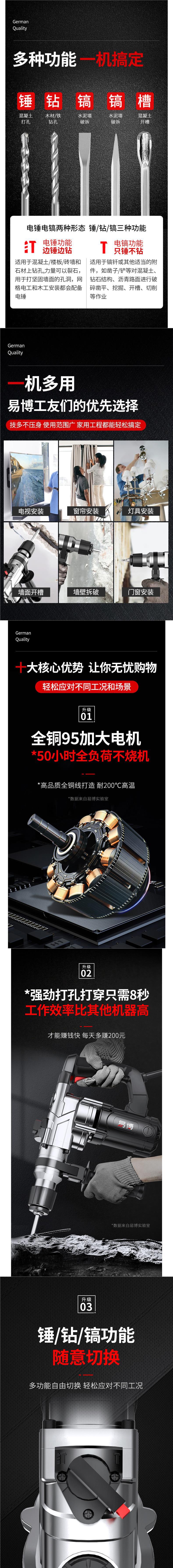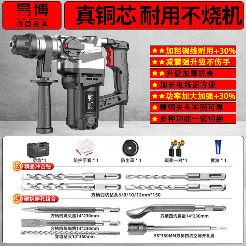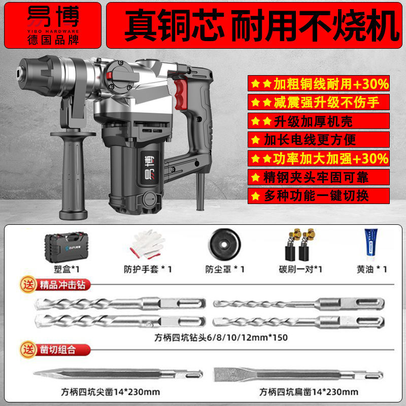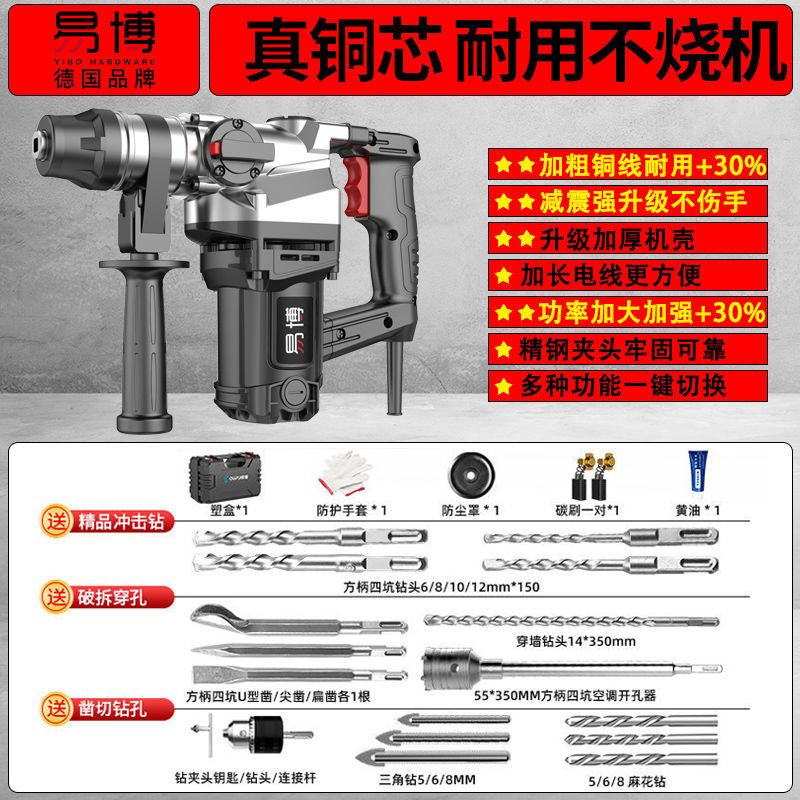 고출력 전기 망치 전기 픽 가정용 다기능 콘크리트 드릴링 벽 구멍 충격 전기 드릴 산업 수준 철거