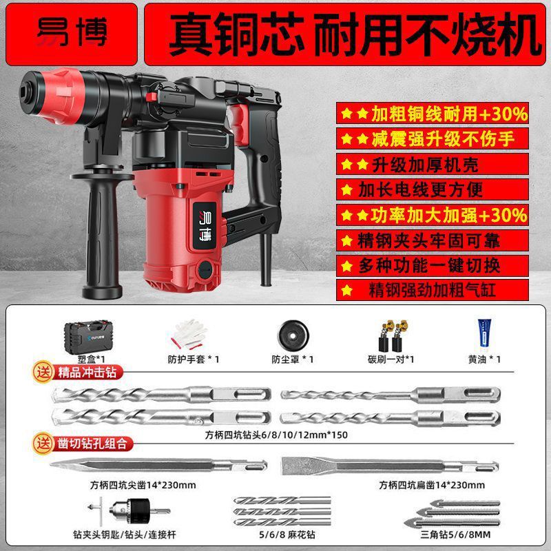 고출력 전기 망치 전기 픽 가정용 다기능 콘크리트 드릴링 벽 구멍 충격 전기 드릴 산업 수준 철거스토어 가기