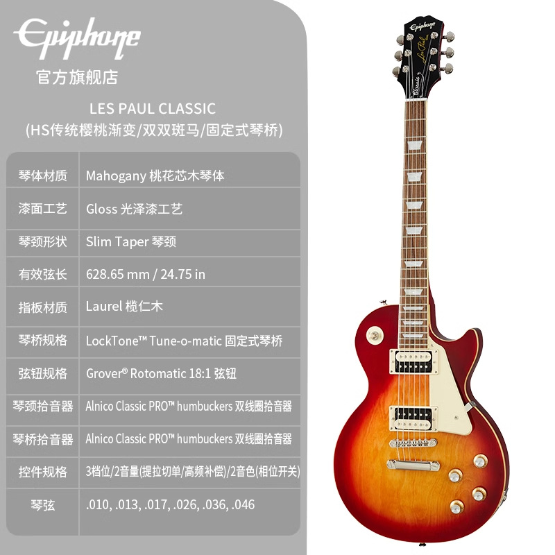 • Les-Paul-Classic-(HS 전통 체리 그라데이션 더블 더블 얼룩말 고정 브리지)