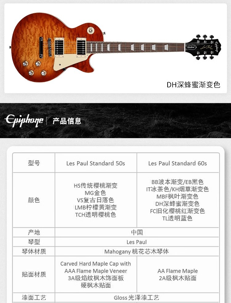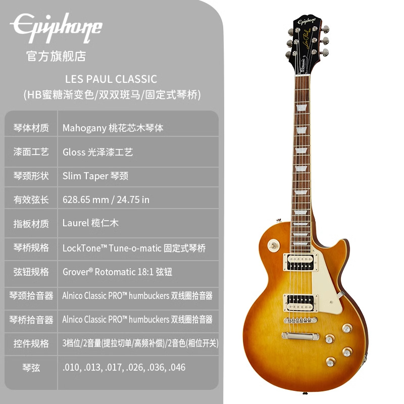 • Les-Paul-Classic-(HB 허니 그라데이션 컬러 더블 더블 얼룩말 고정 브리지)