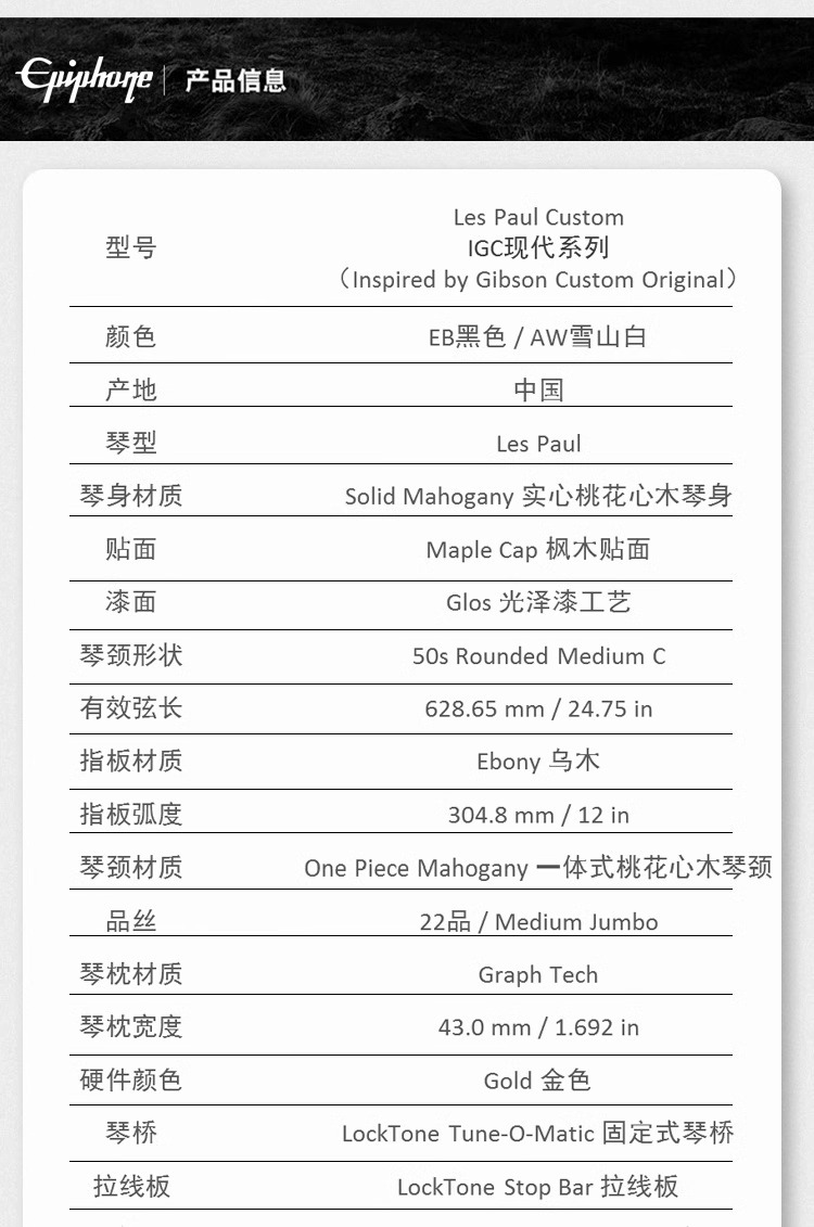 • IG 시리즈 Les Paul Custom Blackback AI 엘레강트 베이지