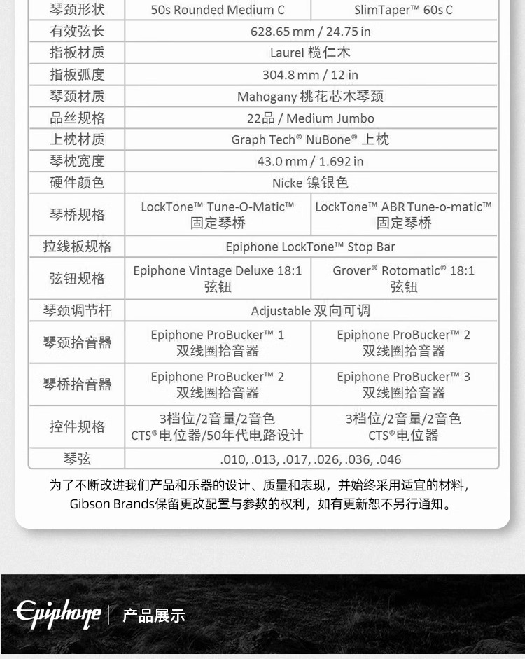 에피폰 일렉트릭 기타 LP 스탠다드'50s/60s/모던 지펜스 이프펑