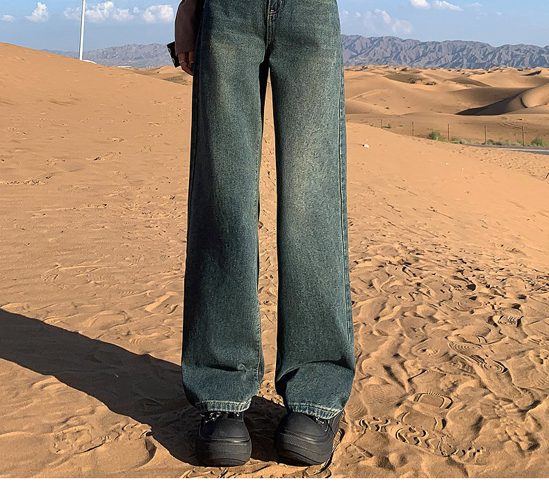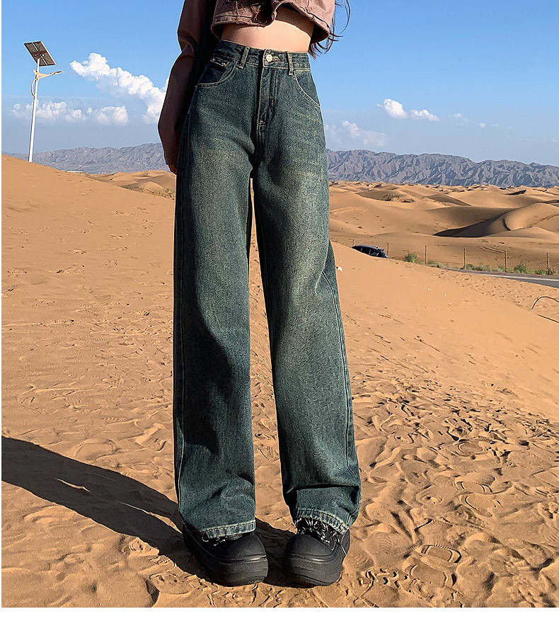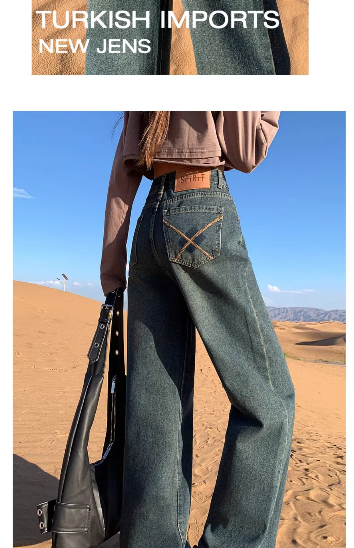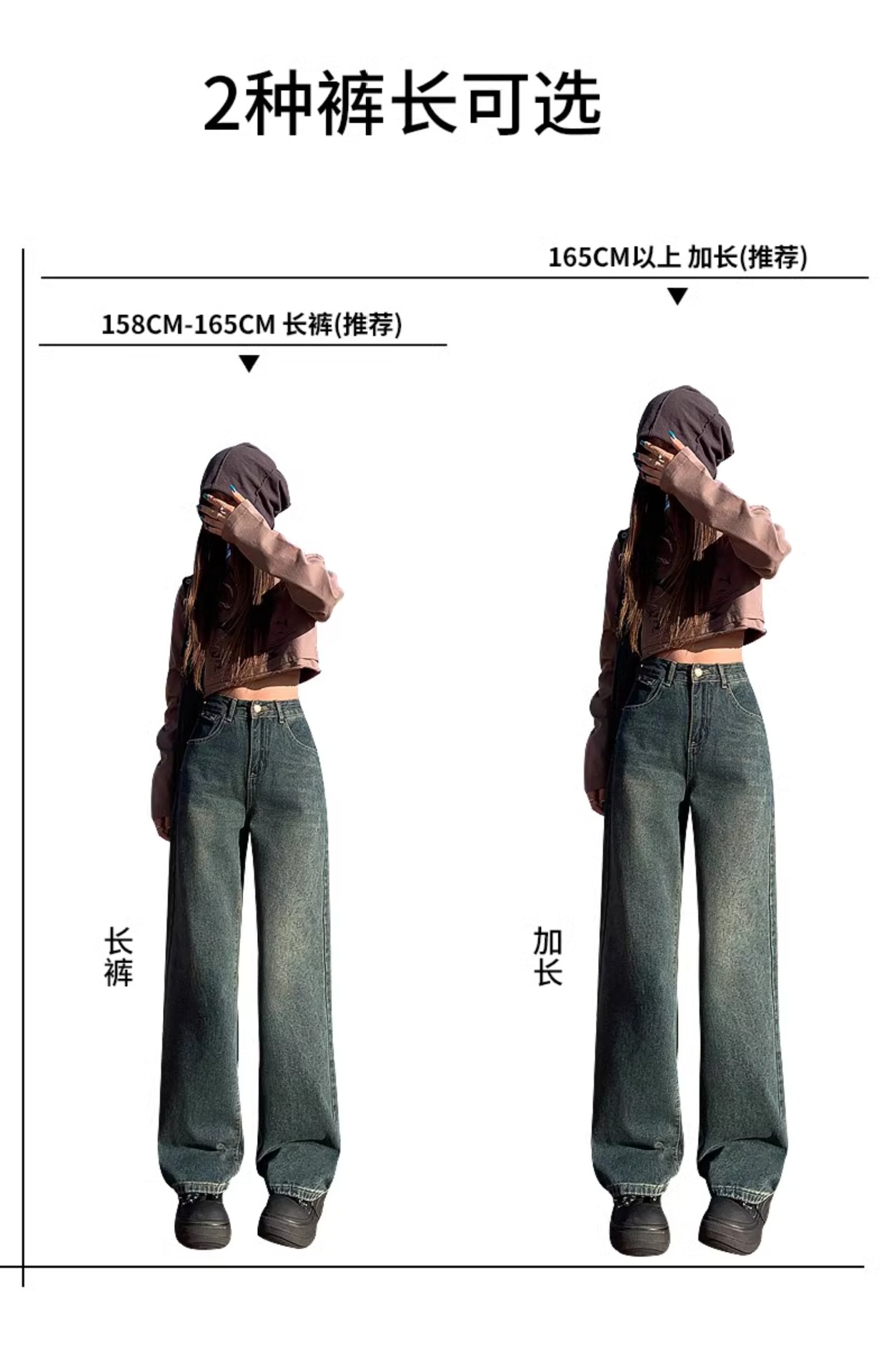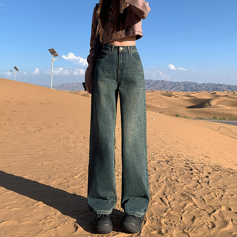 빈티지 시멘트 회색 넓은 다리 청바지 여성의 봄 가을과 겨울 높은 허리 느슨한 2024 새로운 좁은 슬리밍 스트레이트 바지스토어 가기