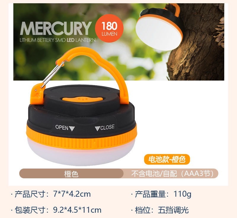 • 다기능 텐트 램프(배터리 버전)에는 배터리가 포함되어 있습니다.