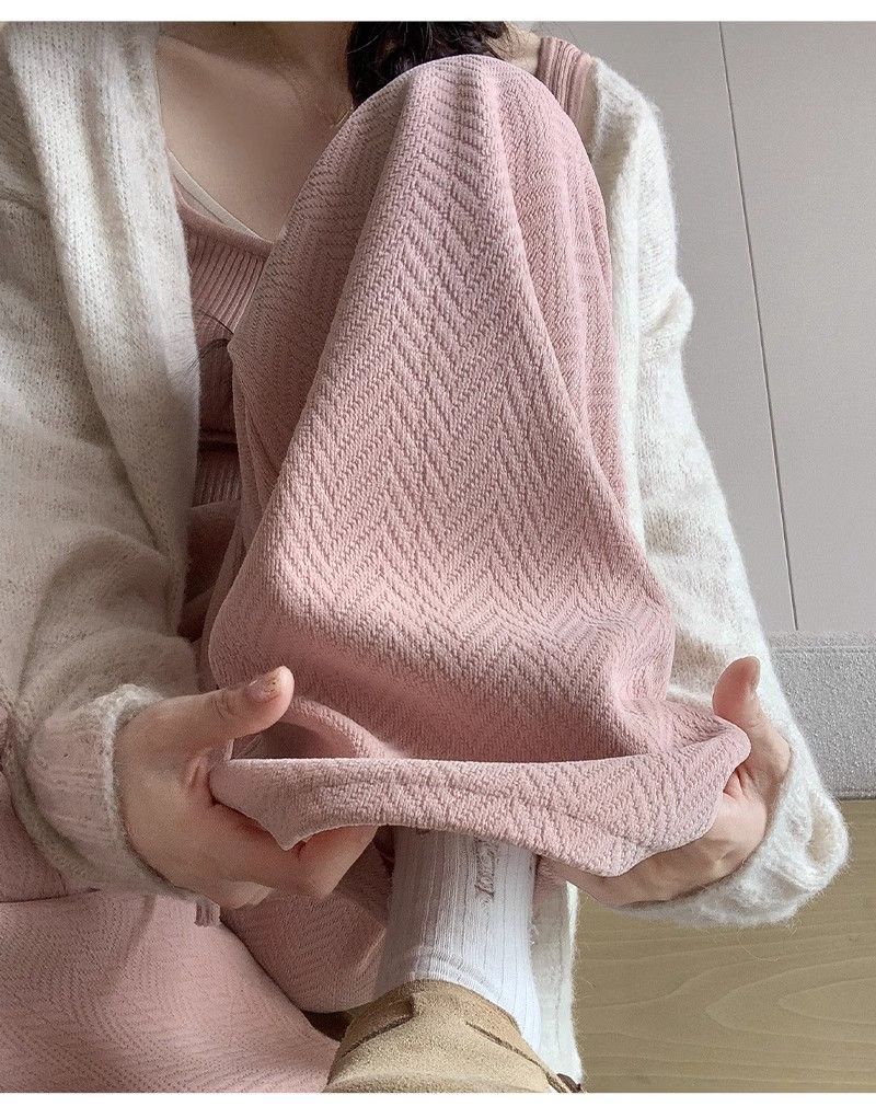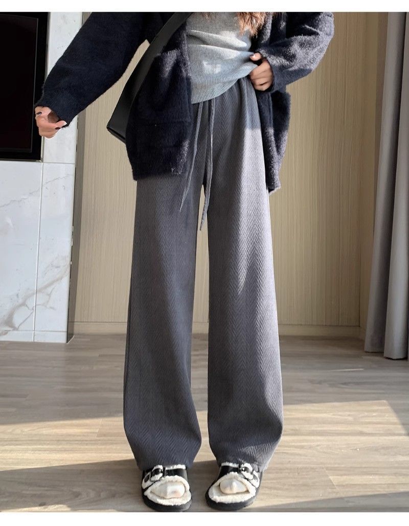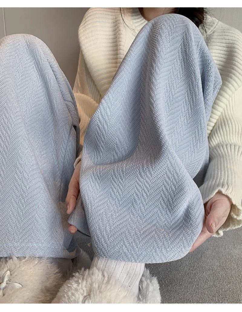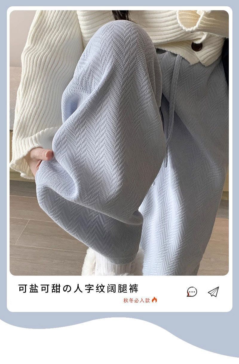 블루 체닐 와이드 레그 바지 여성용 가을과 겨울 기모 느슨한 높은 허리 기저귀 스트레이트 캐주얼 밀 귀 니트 바지스토어 가기