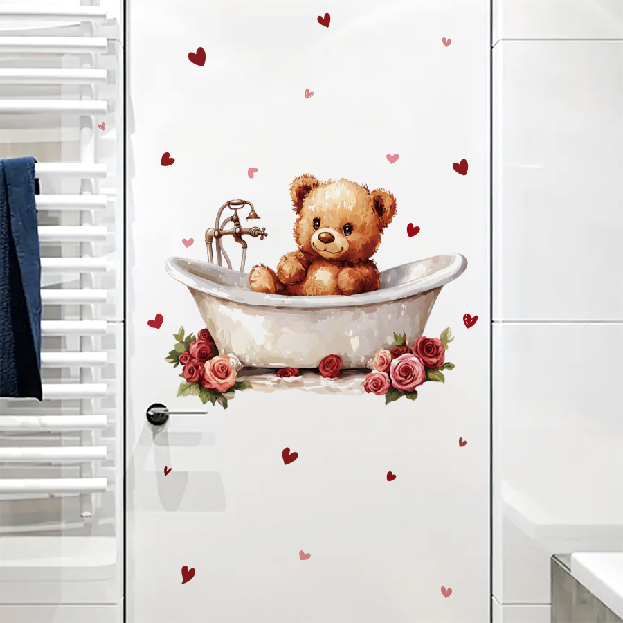 만화 발렌타인 데이 사랑 꽃 욕조 귀여운 곰 자기 접착 벽 스티커 소녀 스타일 장식 스티커 BR3239Q